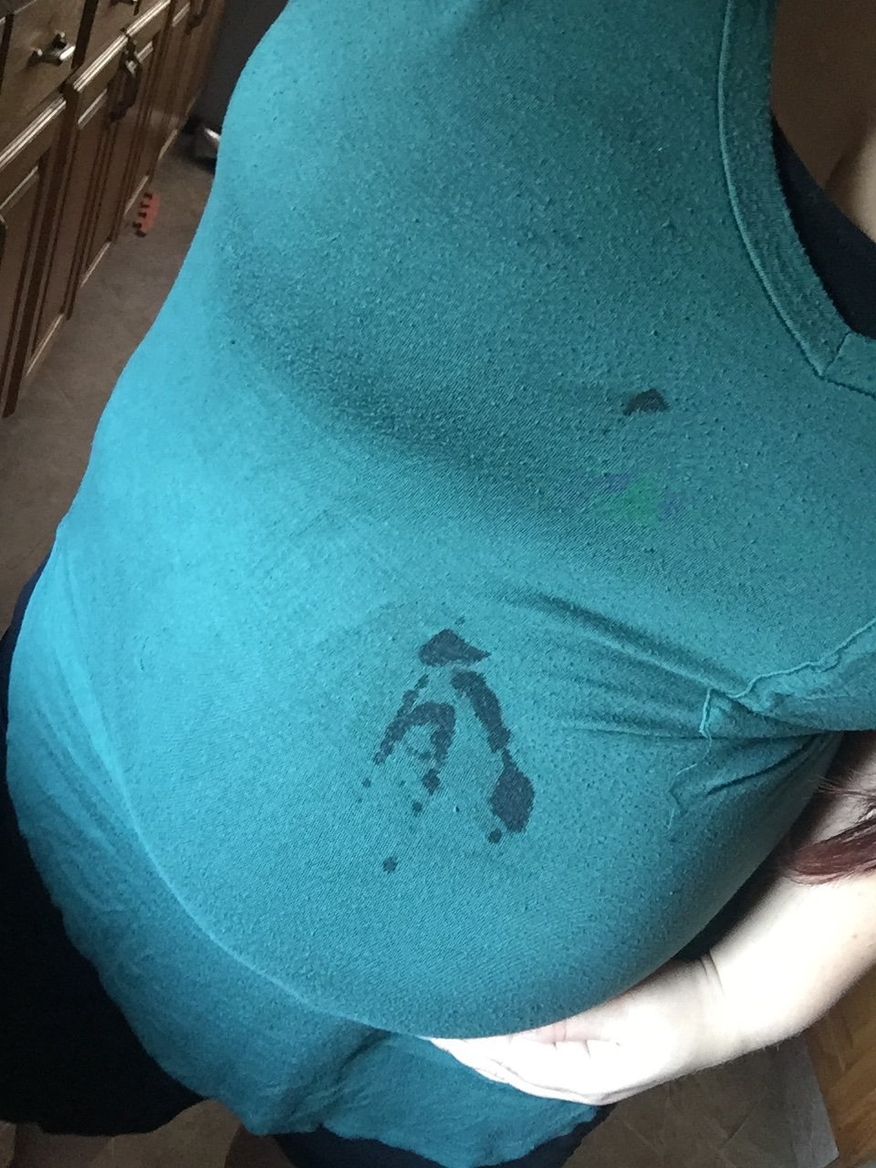 Even though I posted yesterday, I thought I'd share this lovely shot. Had been dressed less than 2 minutes and spilled the kids chocolate milk all over the bump....this thing is already getting in the way and I'm only 22 weeks!! What the frick