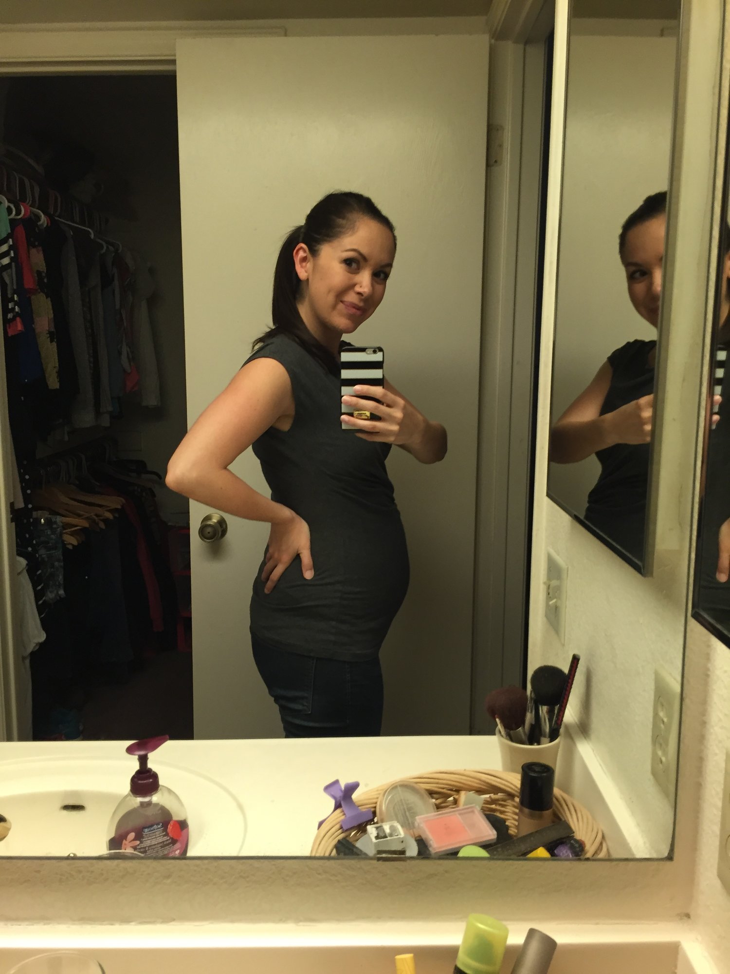 Forever posting on Thursdays because that's when my new week starts. Feeling really thick this week. I'm going to have to start looking for maternity clothes soon. MIL just sent a box of maternity tops she bought at an auction. Call me ungrateful, but the thought of wearing mystery hand me down clothes grosses me out and they smell like an old basement anyways.