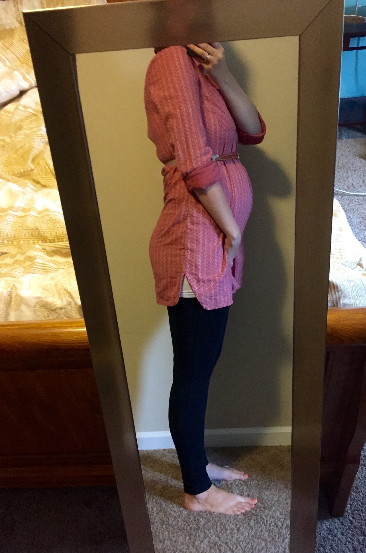 Where my baby go? I swear Monday my bump was huge. Even wore a tighter shirt lol idk guys pregnancy is weird. 19 weeks also can't wait till as scan next week!!!!