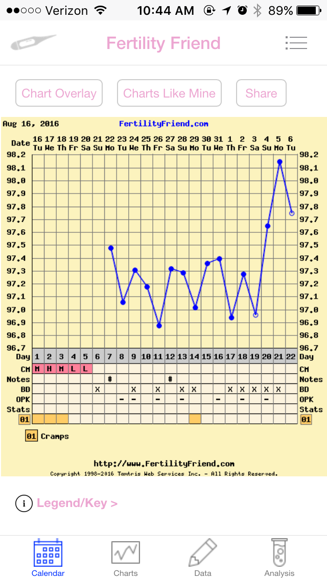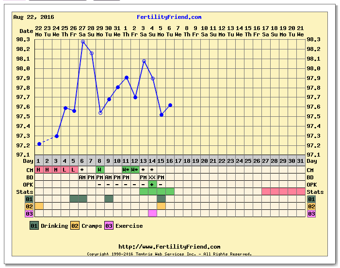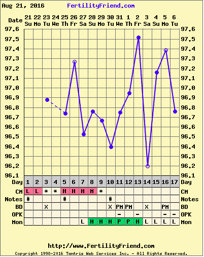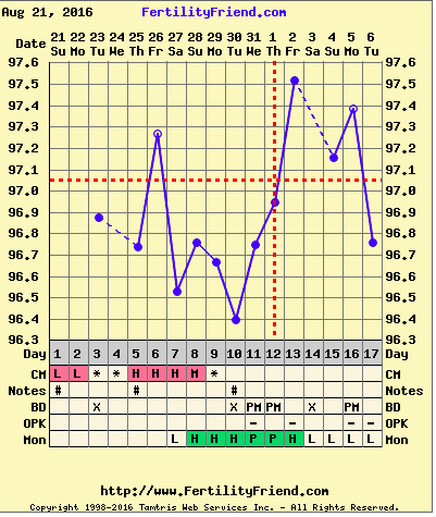 @KhRun17 - GL on getting those CHs! Good call. Seems like I average out around 97.0 from my previous cycles. But, I'm going years back with this since I haven't been the best at temping for a couple months. ****TW after my D&E it took me a while to get back on the band wagon.*** Anyway - if it averages at 97.0, O on CD12 looks pretty promising right?!