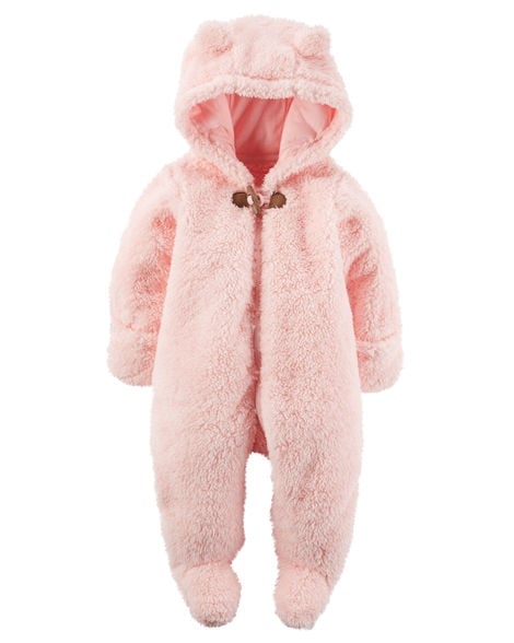 We did onesuits with hoods on them, and then had a layer underneath. Both my kids got really hot when they would sleep, so I usually took the onesuit off. They just napped in onesies with a light swaddle, Sometimes just the onesie. Otherwise, the hood never bothered them.