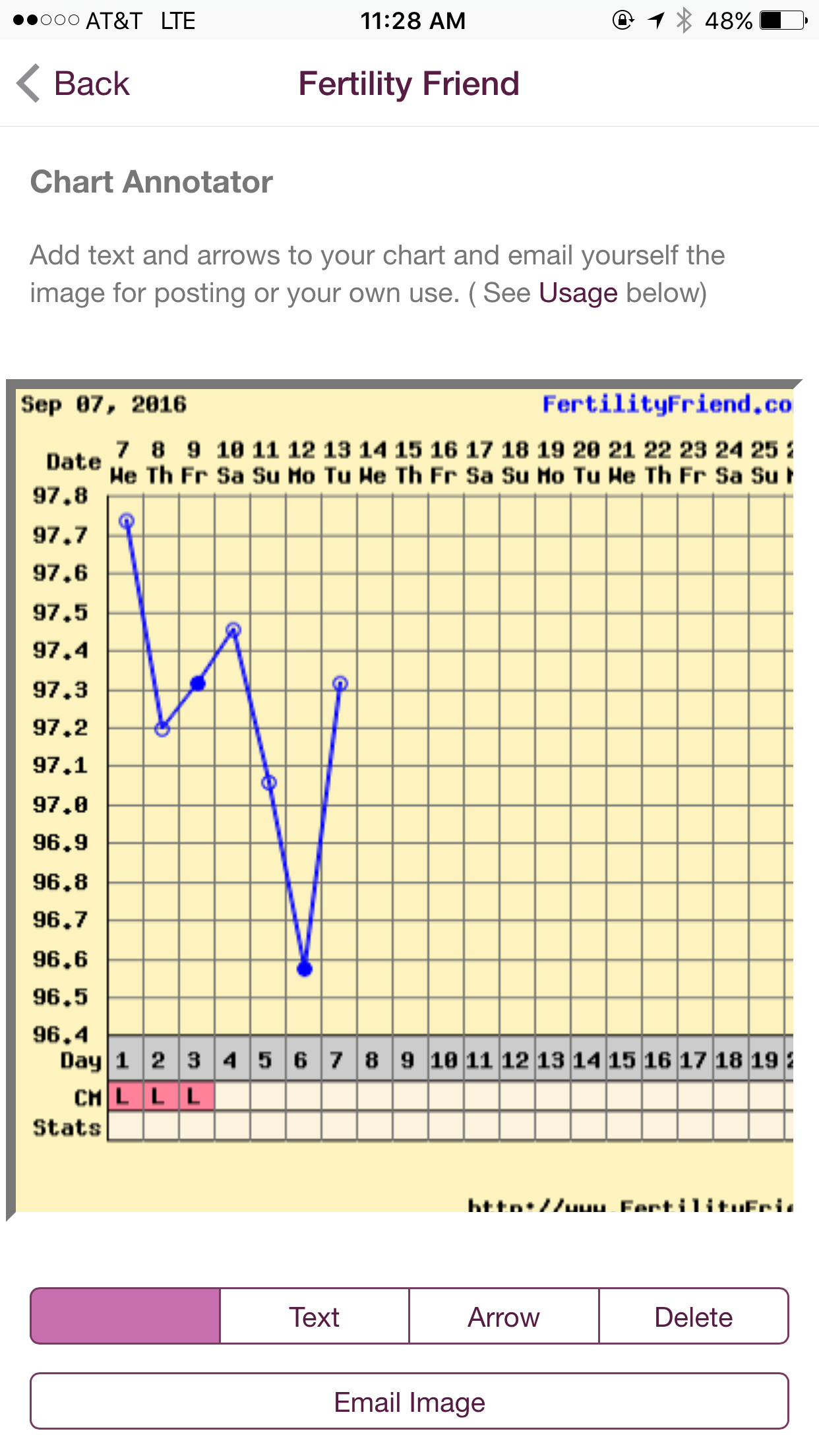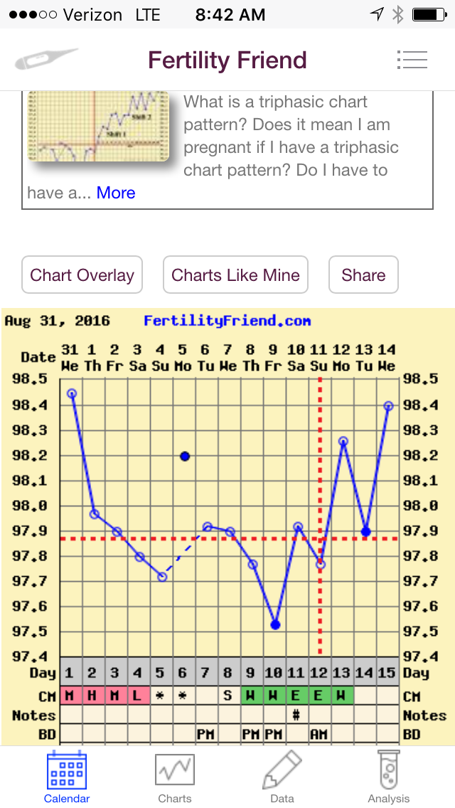 Editing to add: I put in a normal post-O temp for tomorrow and FF did give me crosshairs (the chart with my temp for tomorrow is below). I guess I can just hope for a higher temp tomorrow especially since we didn't BD last night