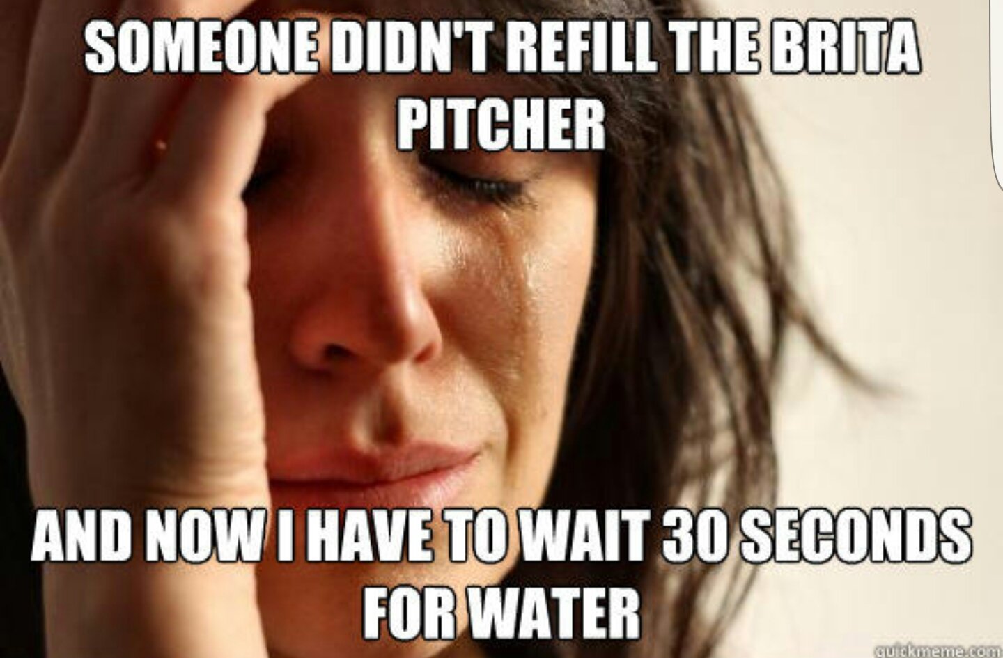 @AverageAsh OMG with the Brita meme!!! That's me and DH all the time, I'm always made he uses it all up to fill his water cooler for work, and when i need it to take my meds in am I have to wait to fill it LOL!!!