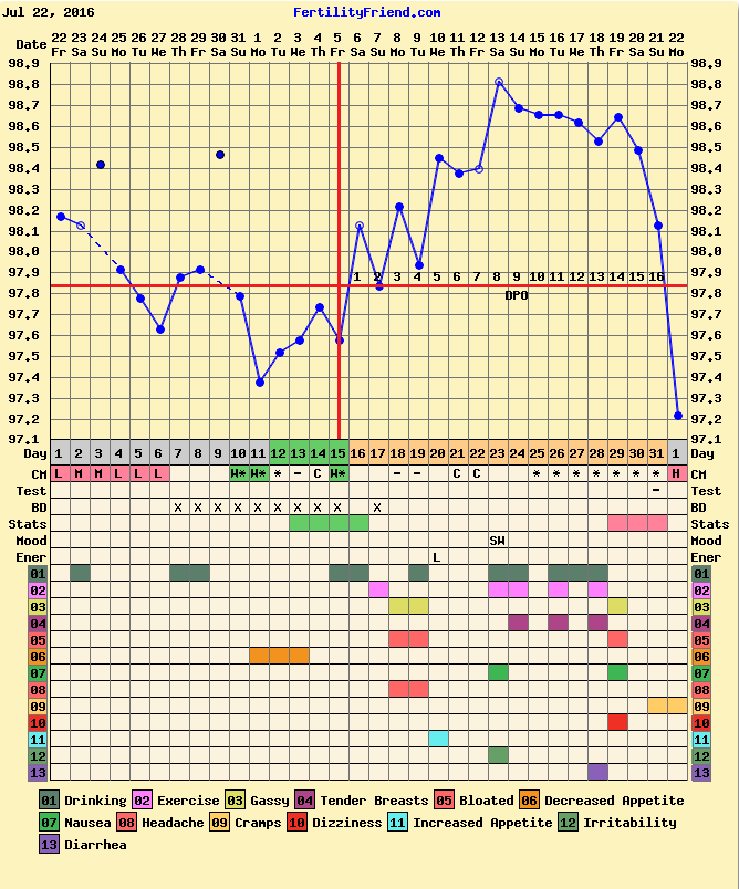 Any R/R/CS? So I only thought of it after all the ER/doc craziness earlier this week, but I actually think this is my second miscarriage since starting to TTC two months ago. I started temping/charting in January to get the hang of it, but we didn't start trying until my cycle starting July 22. Our timing was great, I started having symptoms (sore boobs, etc.) on 10 DPO, but we were on vacation, so I didn't take a test until we got back. At that point my period was late (over my LP), but the test said negative. I do remember that period being a little weird - more blood clots than usual, and I typically don't really have much cramping during my period, but I did that time. Looking back on my chart, it seems very odd that I spotted 10 DPO all the way through to when AF actually started, and that I had sore boobs so early - that never happens to me. It's sort of irrelevant at this point, but I really suspect that I actually had a chemical pregnancy that first month, and that it didn't take for whatever reason, and then I got pregnant again this cycle, but it was probably so soon after the first that my body was like nope.
