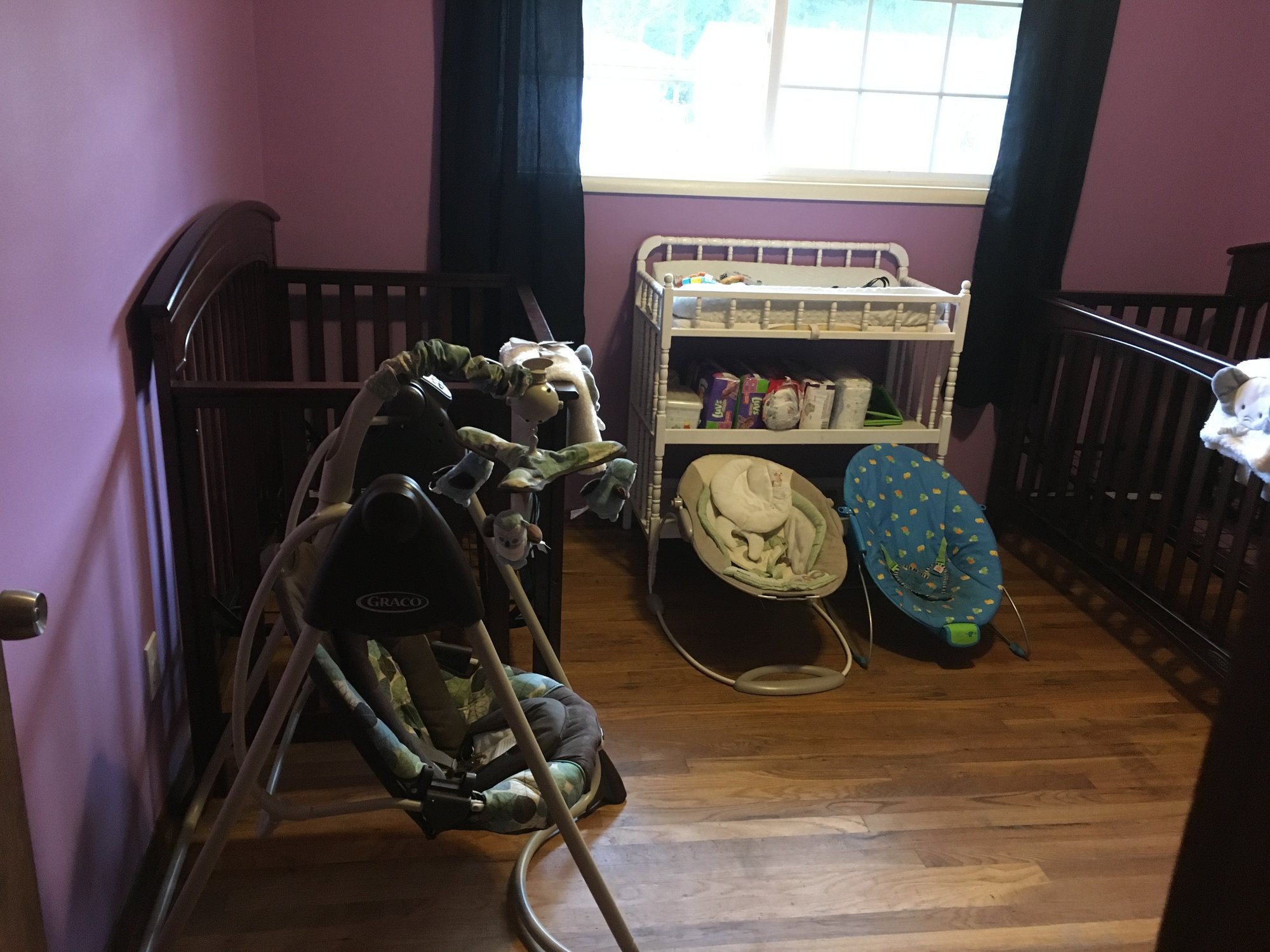 Its getting there! Rug will be here Tuesday, then I can get curtains to match. Need to put the wall decal up. Need crib mattresses and bedding. But it's looking like a nursery! ❤️
