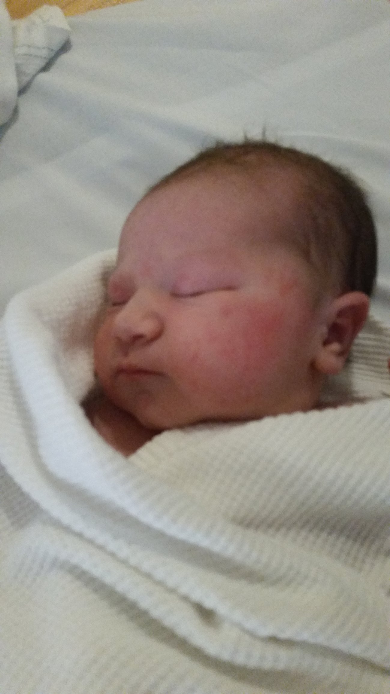 Dylan Michael was born today at 1142 at 41 weeks old. We were supposed to be induced today at 9am but our little guy had different plans. Last night around 1130 I felt a weird pop but no gush of fluids, and contractions started at 3 and a half minutes apart and did not let up till I was able to get my epidural at 230.at 430 they broke my water and by 7 I was complete. They let me labor down till just before 9 and after 2 and a half hours of pushing thanks to him being turned to the side he finally arrived! We couldnt be more in love .