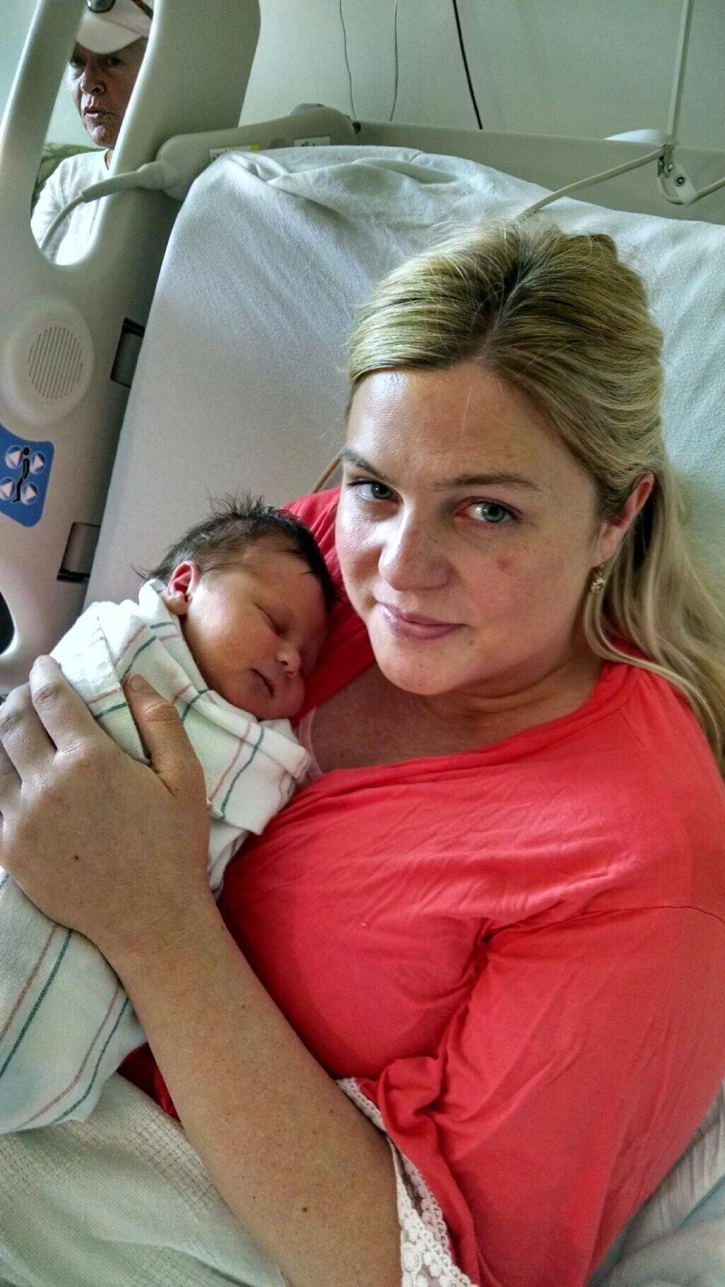 Hey all! Baby Haddie arrived on 10/4 at 4:09 am. It was a whirlwind ride. Everyone is happy and healthy. She weighed 8lbs. 13oz. I was having contractions yesterday starting about 4 minutes a part. I started timing as soon as they started to pick up around 330. Went to L&D to be checked and I was only 2.5 cm and sent home. I went home, slept for two hours and woke up to stronger contractions about three minutes a part at about midnight. By 2 am they were two minutes a part and I writhing in pain, then my water started leaking. Called to tell LD and I was on my way. Got there and checked and I was 4 cm and I yelled for an epi to literally everyone hah! After 45 minutes or so I was upstairs in my room getting an epi as I was hunched over my water broke and I felt the contractions change but figured I couldn't possibly be fully dilated. But every time I had a contraction I now felt enormous pressure and my hips would twitch. My midwife noticed the change in my face and I just said I think you better check me. The epi was finally set and started when and they laid me down to check me and I just heard my midwife say oh well you're 9 cm now. Let me check her position. And I just thought um WTF? Then my midwife said oh well there she is, there's her head. Well sweetie push when you feel like pushing. Three pushes later my baby girl was crying and on my chest! Kind of the craziest experience of my life but so glad she's here finally!