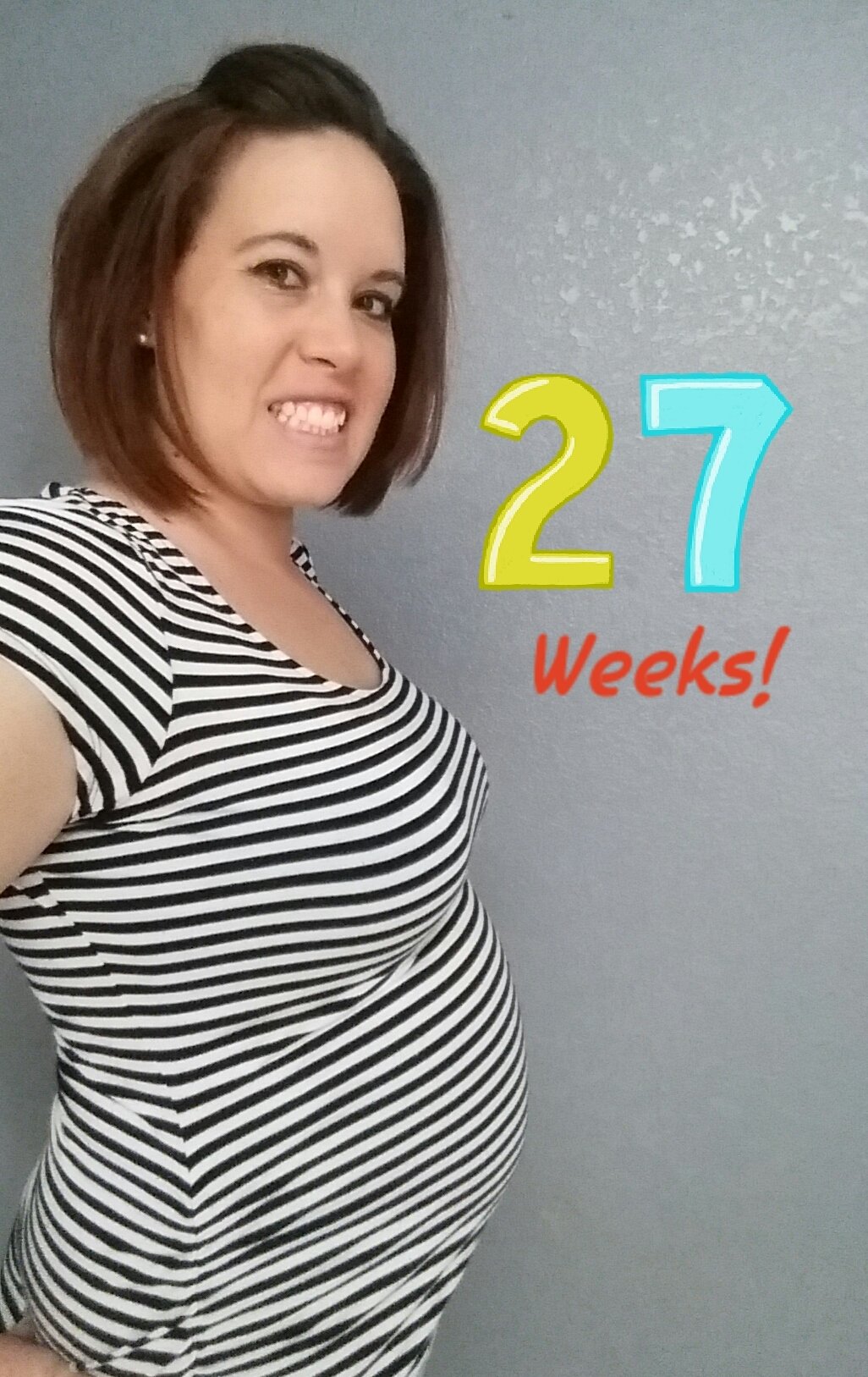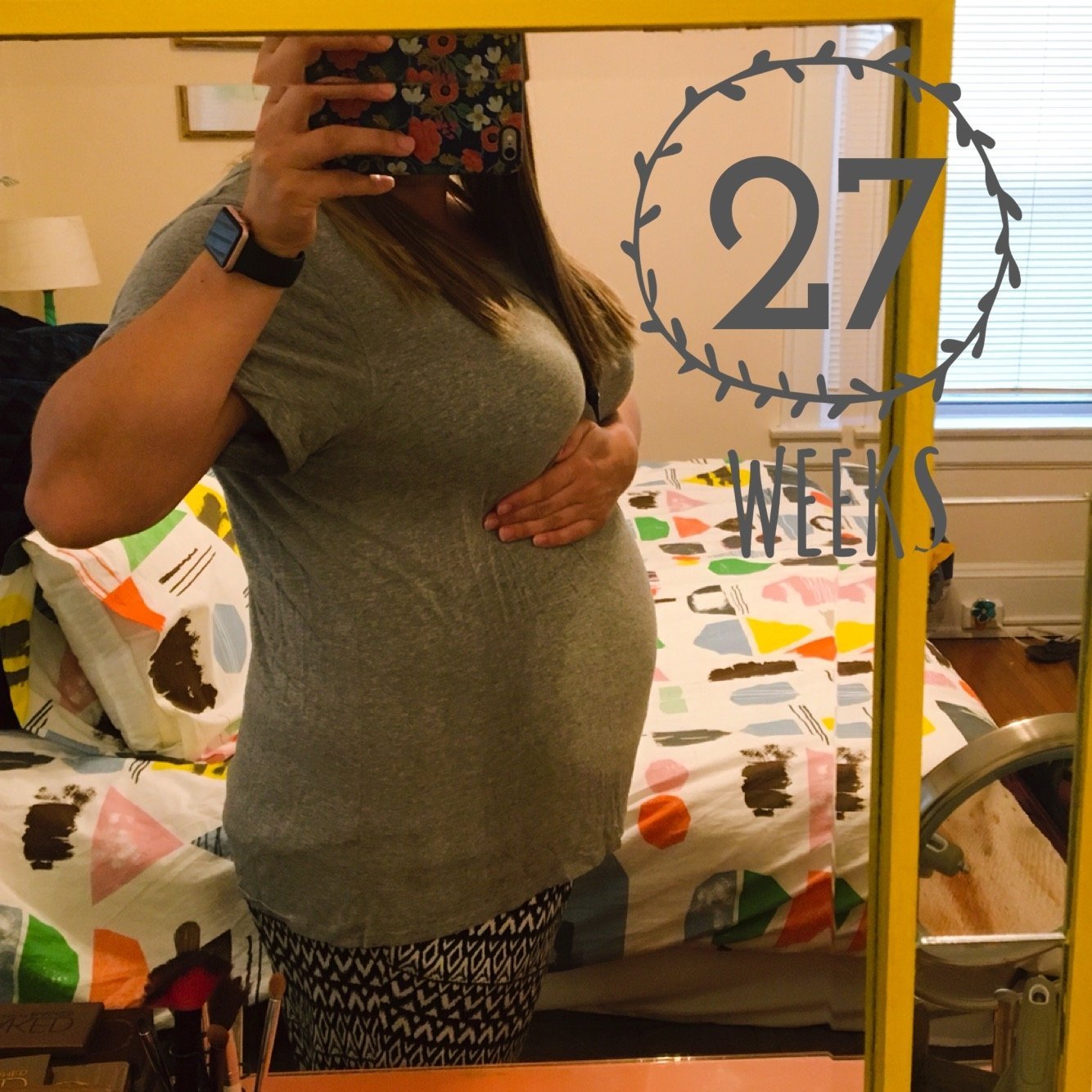 27 weeks tomorrow. I swear my boobs are in a race to keep up with my belly. Just STAHP!