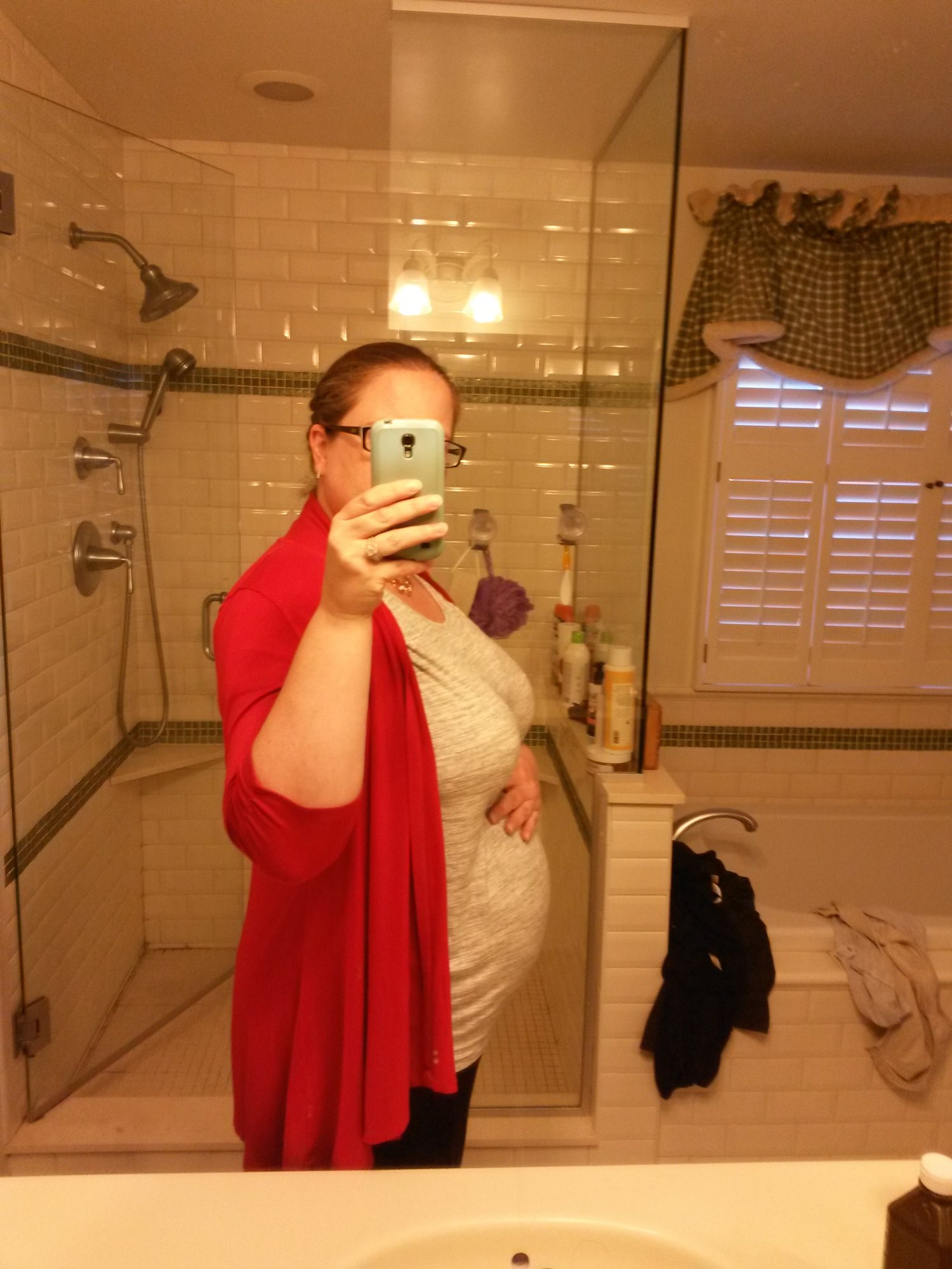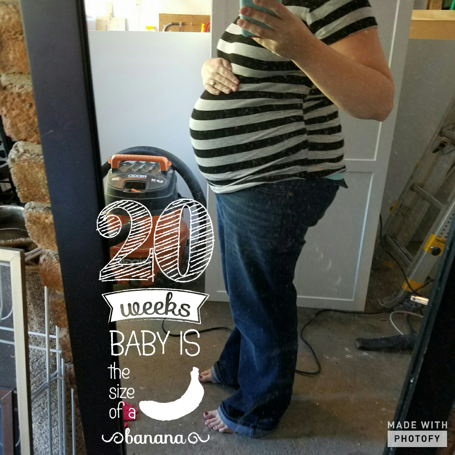 Don't mind my under construction garage, it's where the mirror is. 20 weeks! This is what baby #4 looks like when you are already, um, mommy built and almost 40.