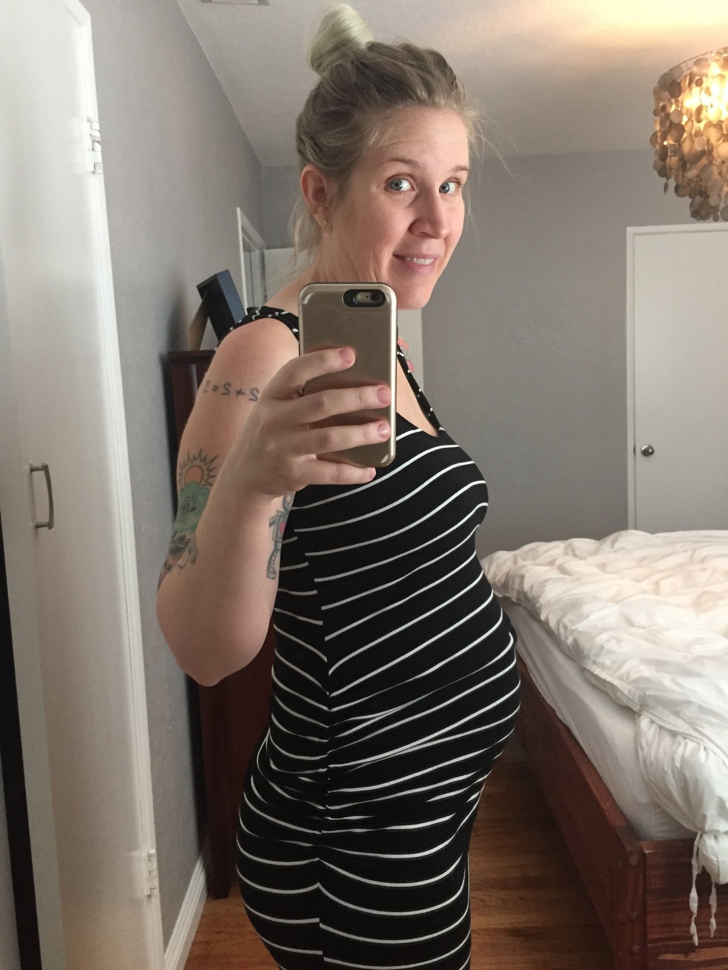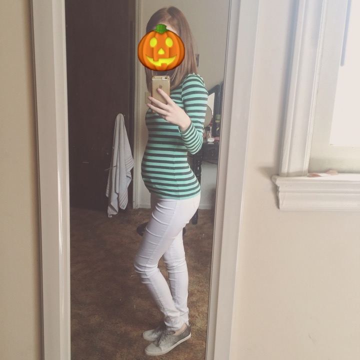 19+1 and nothing says "I need to do laundry" more than horizontal stripes while pregnant! Amazed these pants still fit...