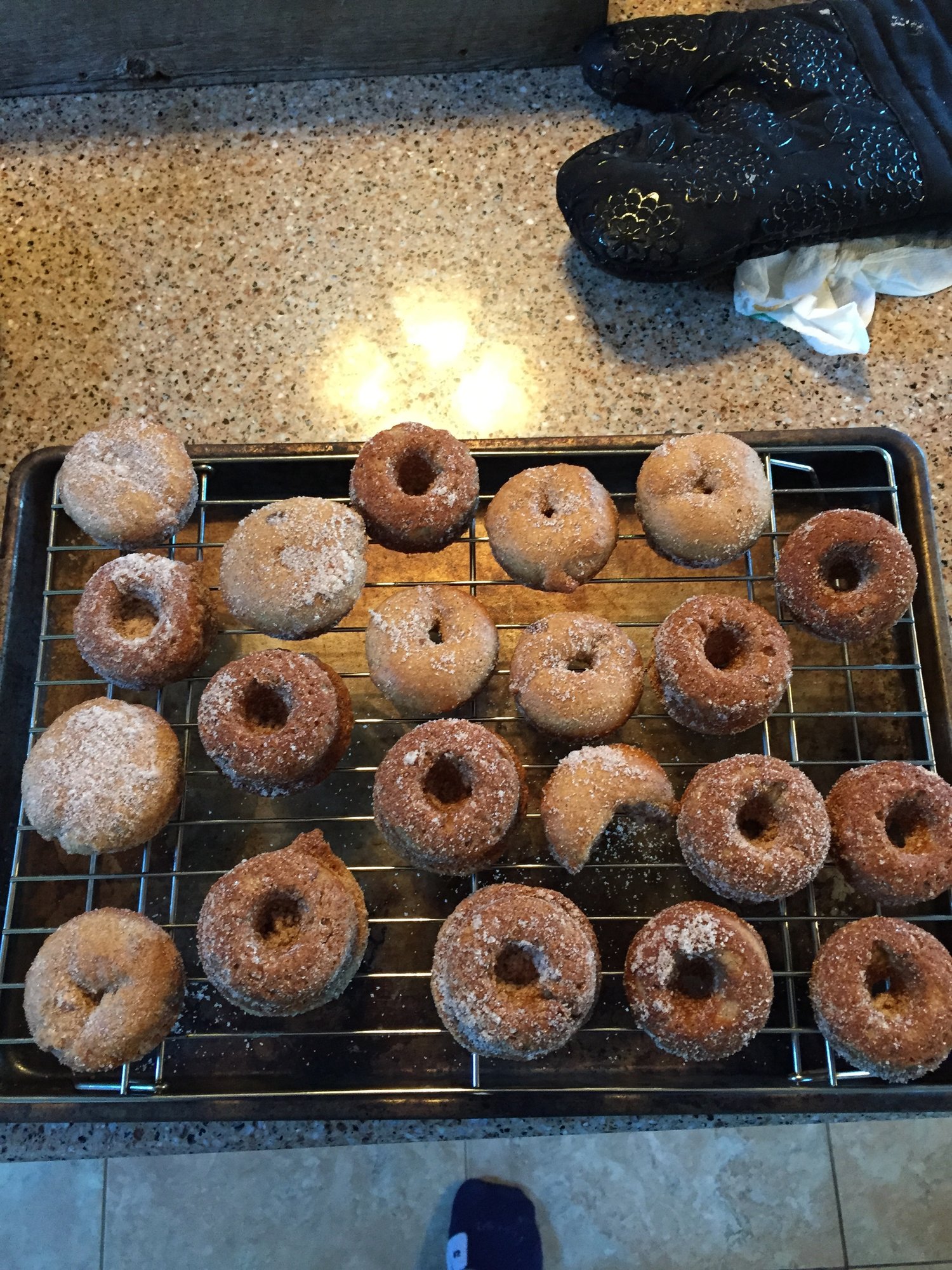 Photo evidence of one of my hobbies! Fresh out of the oven gluten free, apple cider donuts. Tossed in cinnamon and sugar...this definitely doesn't on the healthy living check in *one broke so I HAD to eat the other half