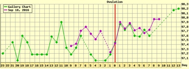 R/R: Well I wasn't able to get a temp for yesterday, then today I was really hoping to see higher temps, 97.9/98.0... what I got was 97.55, below my cover line. *I also realized that my FF is on the "research" setting and on any other setting it completely removes my crosshairs. I am thinking that my LH surge and corresponding signs were followed by a failure to actually release the egg. I am hoping for a temp spike above cover line and continued growth, but not feeling very optimistic. I'd like to say I'm handling it well, but I fell down the google rabbit hole with "secondary estrogen surge" and "corpus luteum dip" searches this morning. I feel like after only 60 days of charting, I haven't been in this game long enough to be frustrated with the signs my body is or isn't giving but telling myself that doesn't seem to be lessening my frustration.