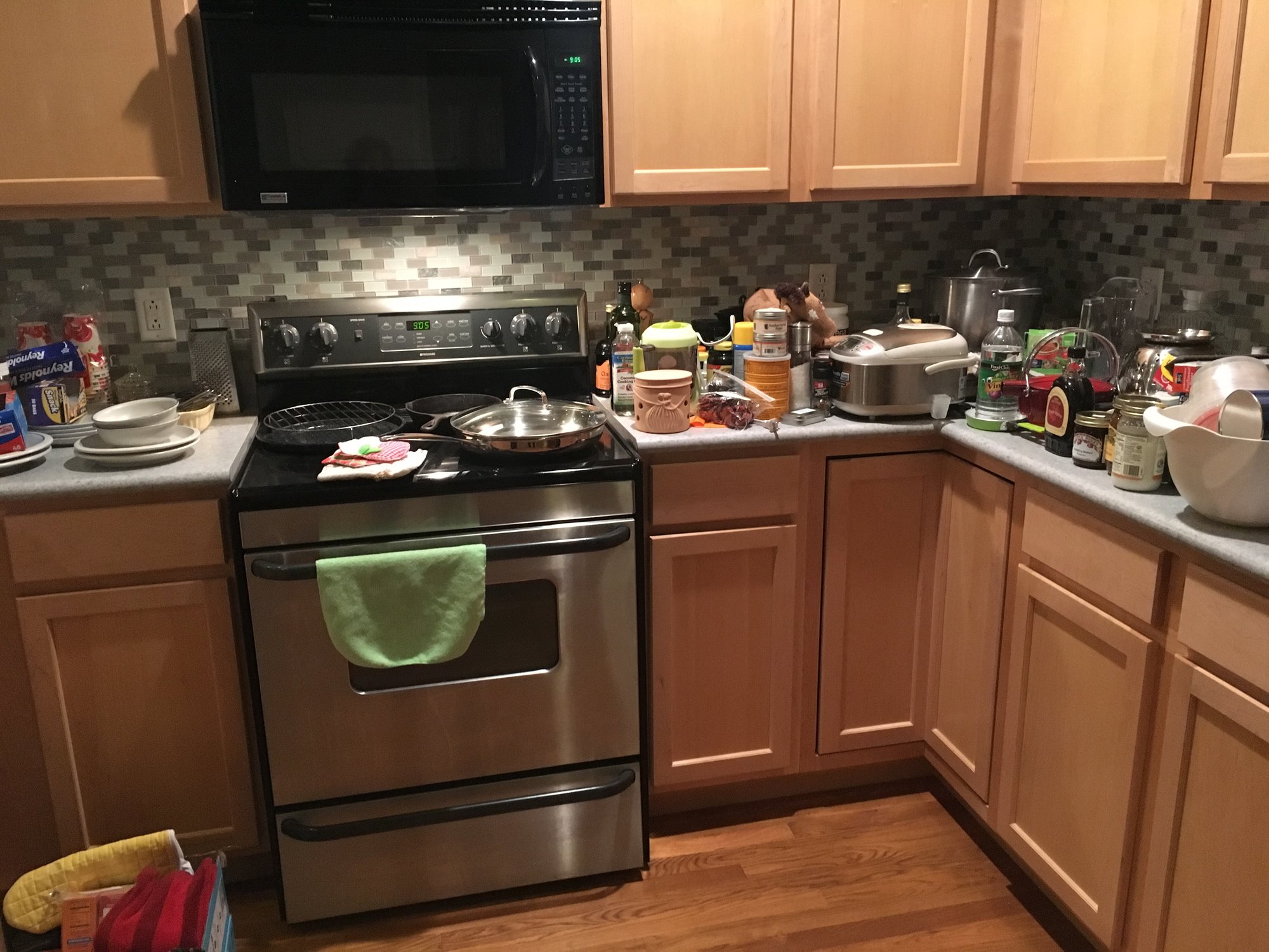 We just moved into our house--the house is a disaster of boxes everywhere right now so pretty much a nester's wet dream, but I'm hesitant to touch any of the baby's things and go in his nursery and get bronchitis germs all over everything so naturally I organized our entire kitchen and my master closet:
