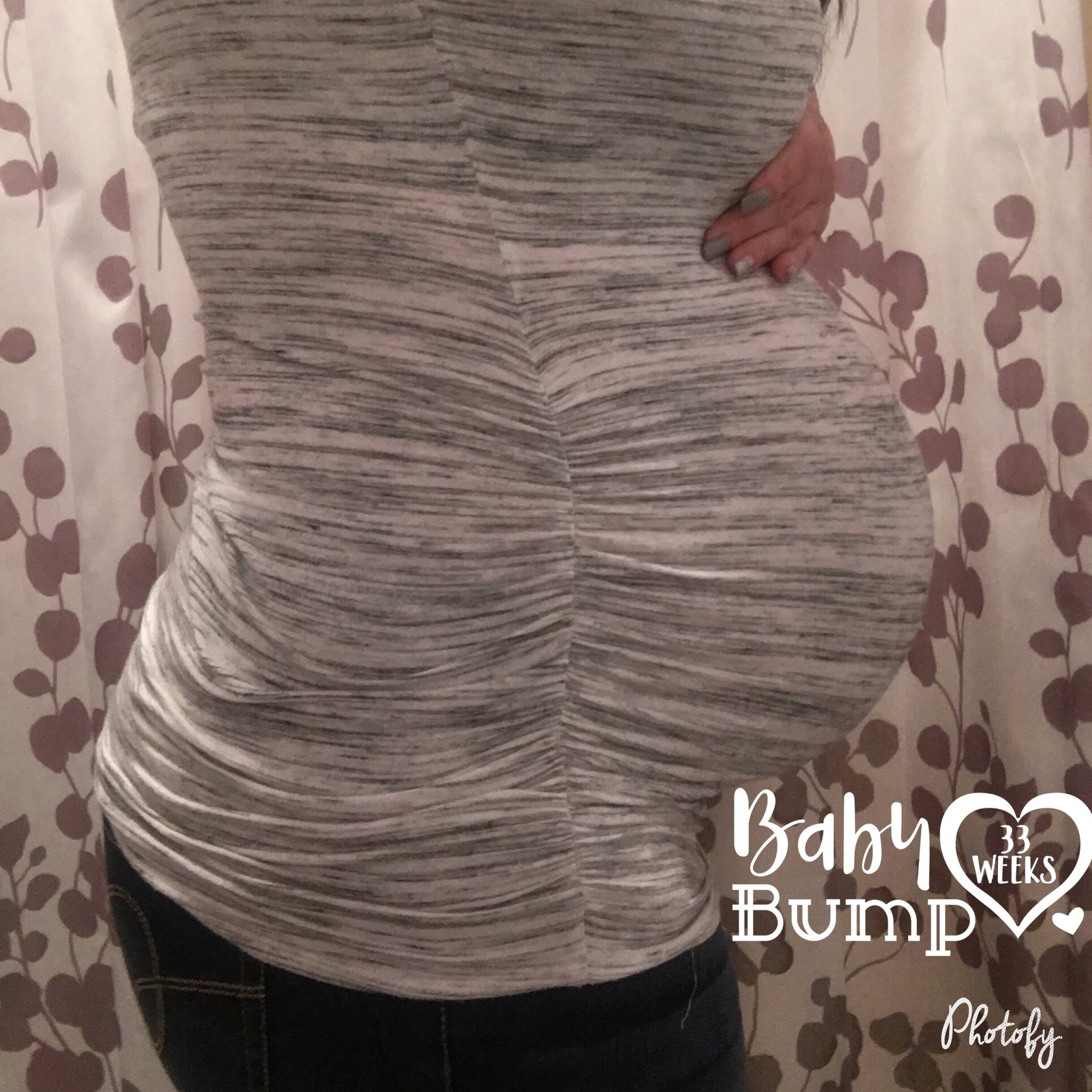 33 weeks. Gross thrift store dressing room + dirty camera lens = total glamour shot.