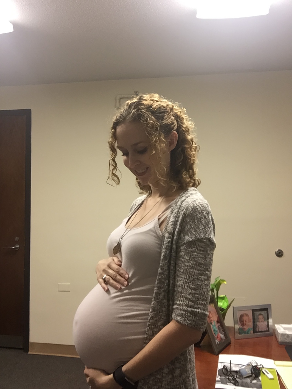 I also wear my belly bandit maternity belt at night once I'm home from work. Sometimes he feels low and it helps with back pain/posture... although my back pain is more upper left shoulder but whatevs.