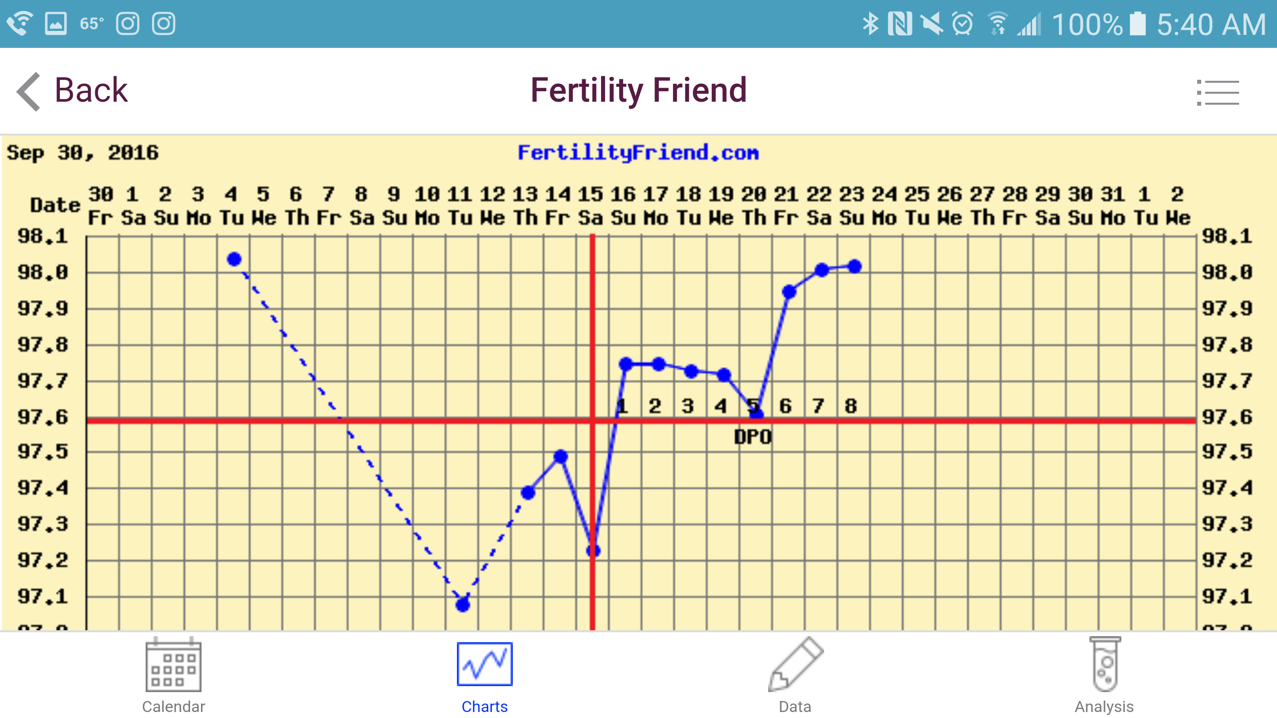 @beachbunnyxo123 I don't temp. I know, I know, please don't judge me. It's not because I don't believe it reduces stress and offers answers to many people on here because I know it does, and I think that's great. Truth is, I and MH both have a really bad history of sleeping issues. Once in 2012 I didn't sleep at all for 10 days --not exaggerating-- so we go kinda nuts on the sleep hygiene and turn off our phones at night and all that. We are also both very light sleepers and can't get out of bed without waking each other. We finally after many years found a system that works for both of us and I am 100% positive if I start temping it will shatter our system, and cause a lot of stress for us both, which is ultimately worse for TTC than not temping. Because I feel bad for not temping, I do other stuff people probably would call overboard (ie. extreme diet restrictions). I do track my CM and use OPKs. Anyway, point is I don't have a chart to stalk, though I do so appreciate you being willing to stalk it :)