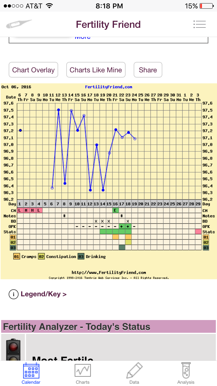 Can I get a CS? Is it possible I O'd yesterday? I'm confused at why my temp didn't go up this morning. I usually O around cd 15. And almost always have a 28 day cycle. Do I need to chill and just get more temps? Probably.