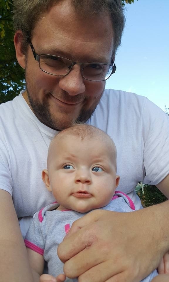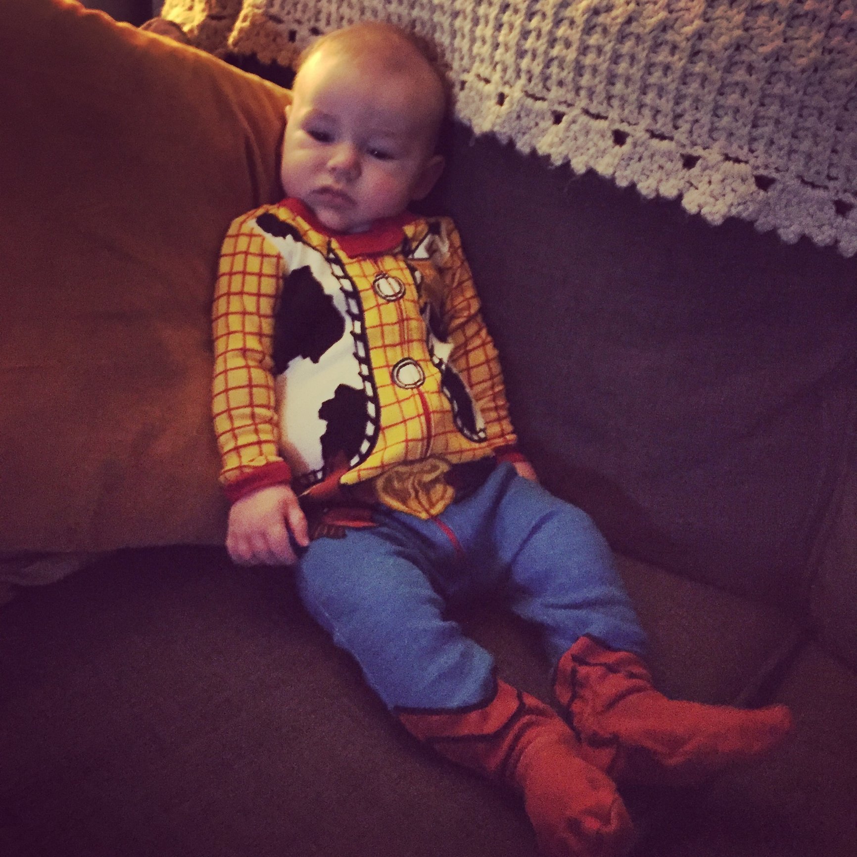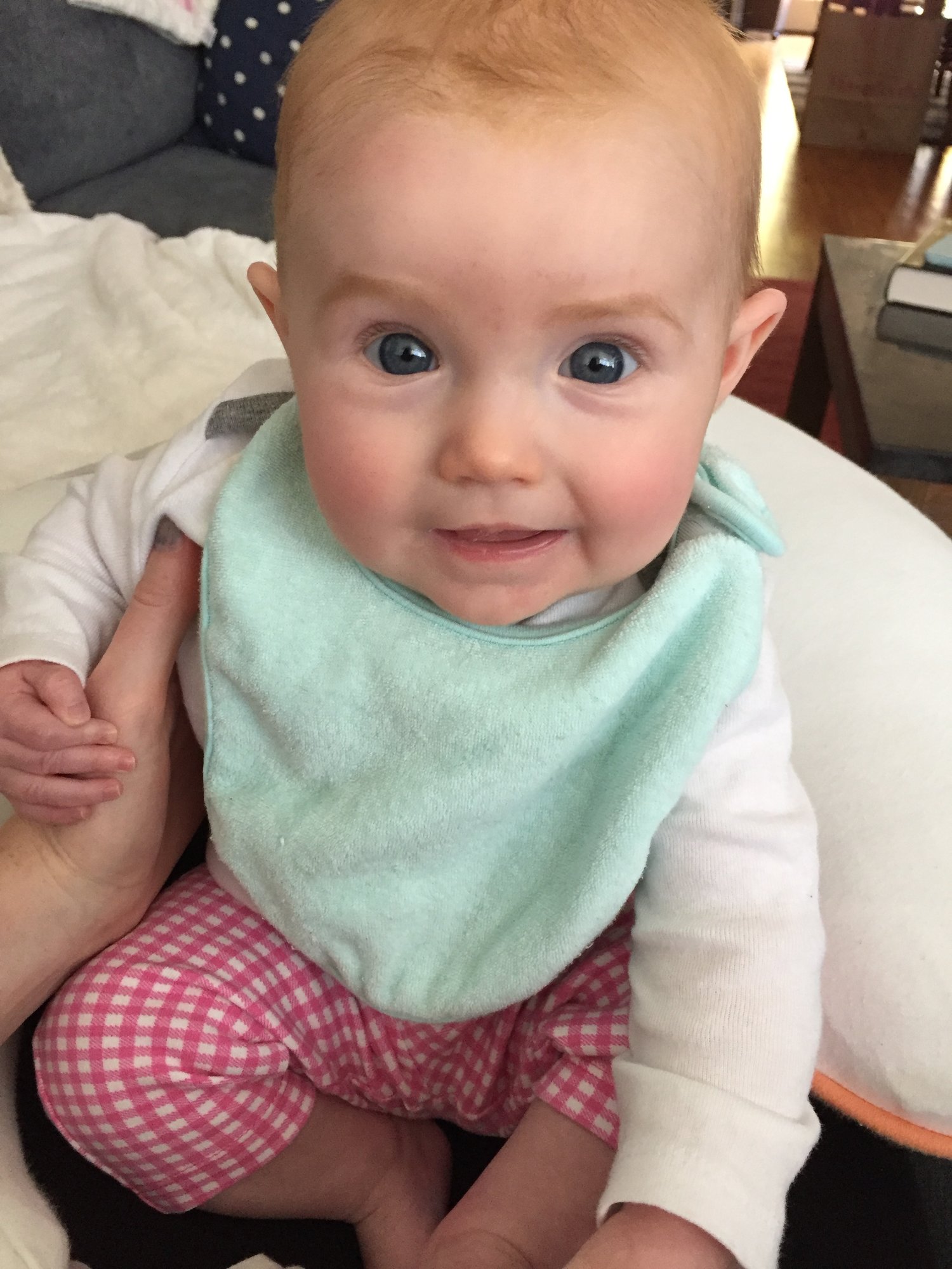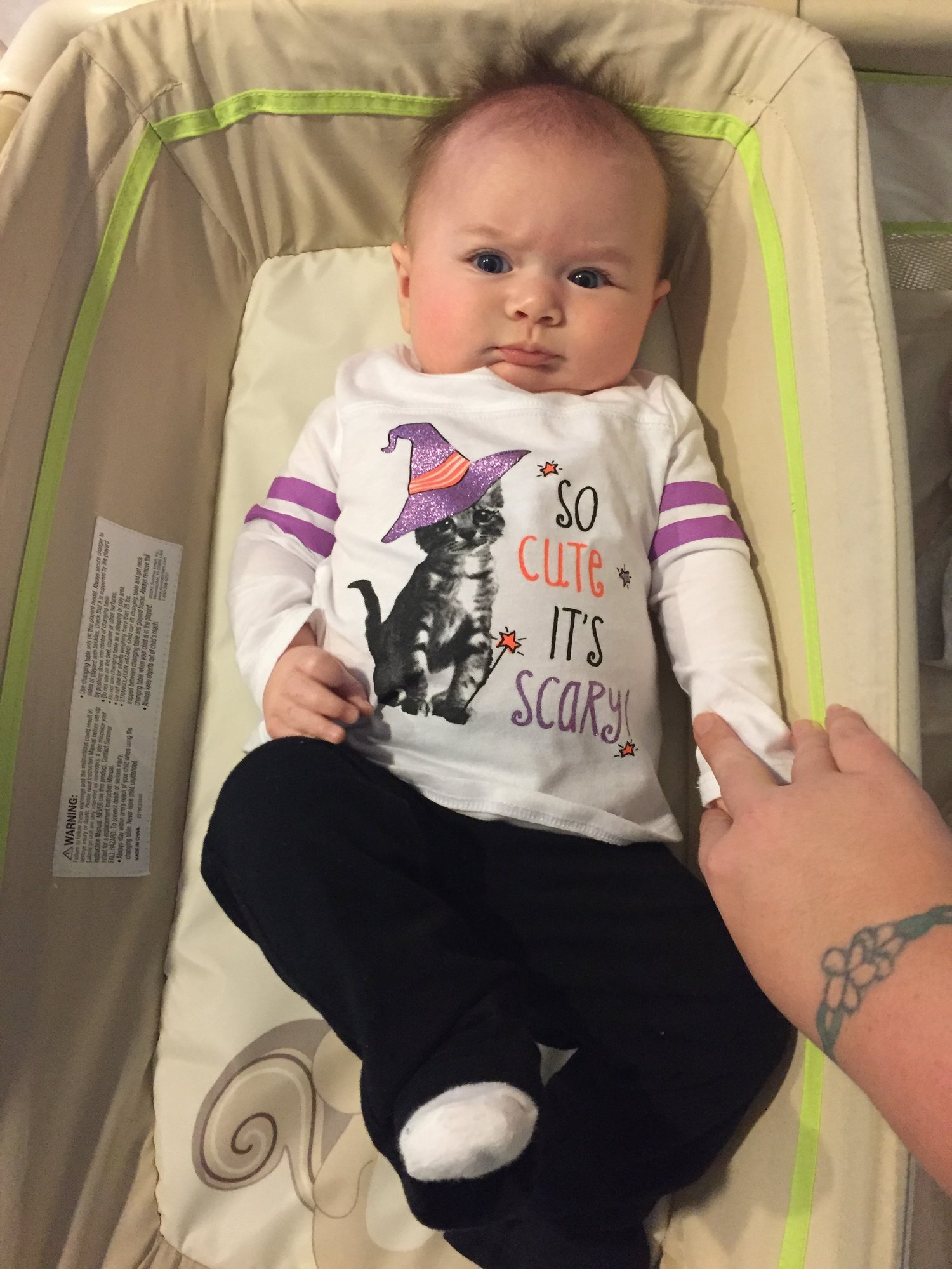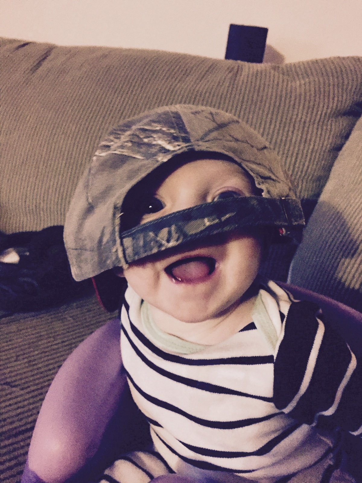 Oliver will be five months old on Halloween. He loves blowing raspberries and spit bubbles.