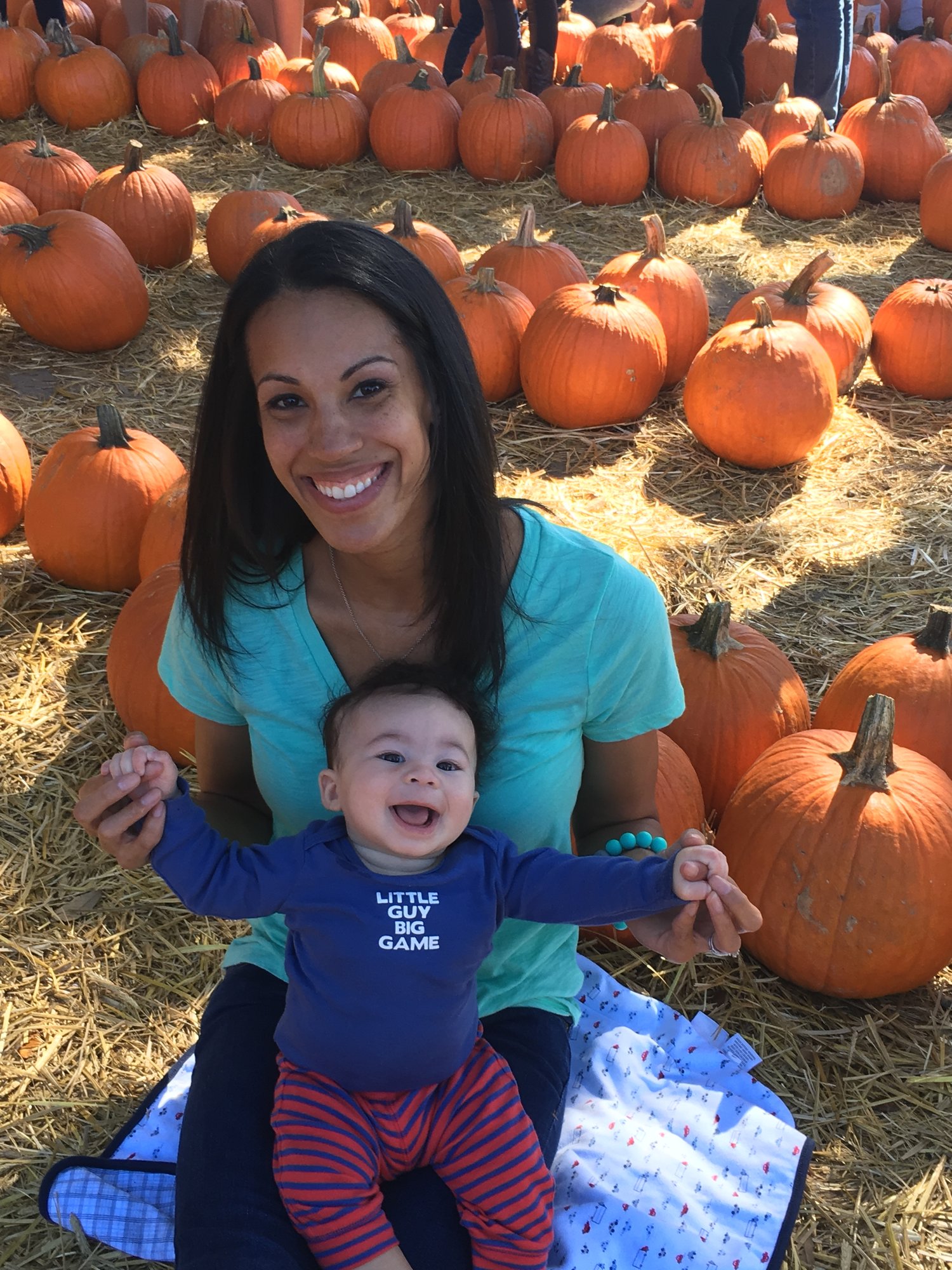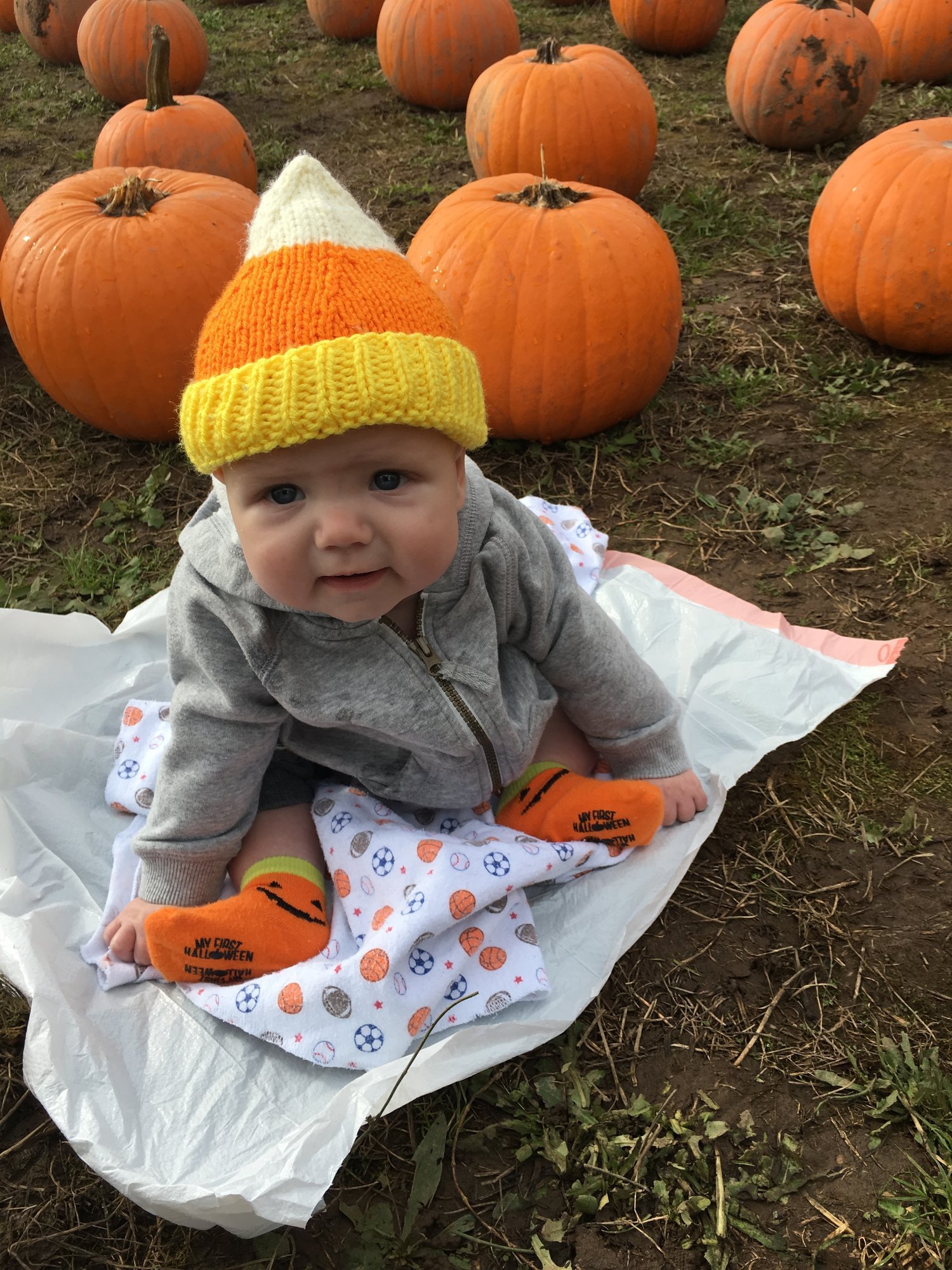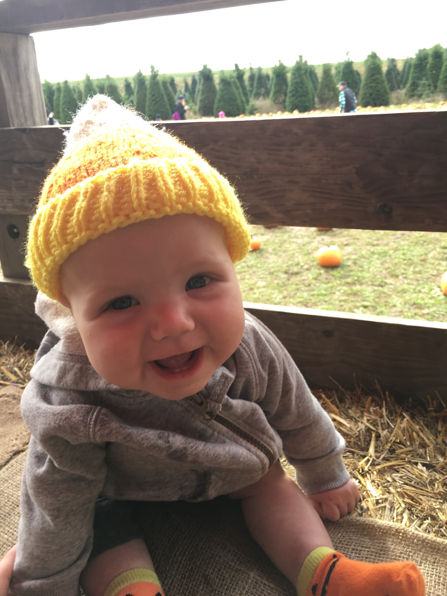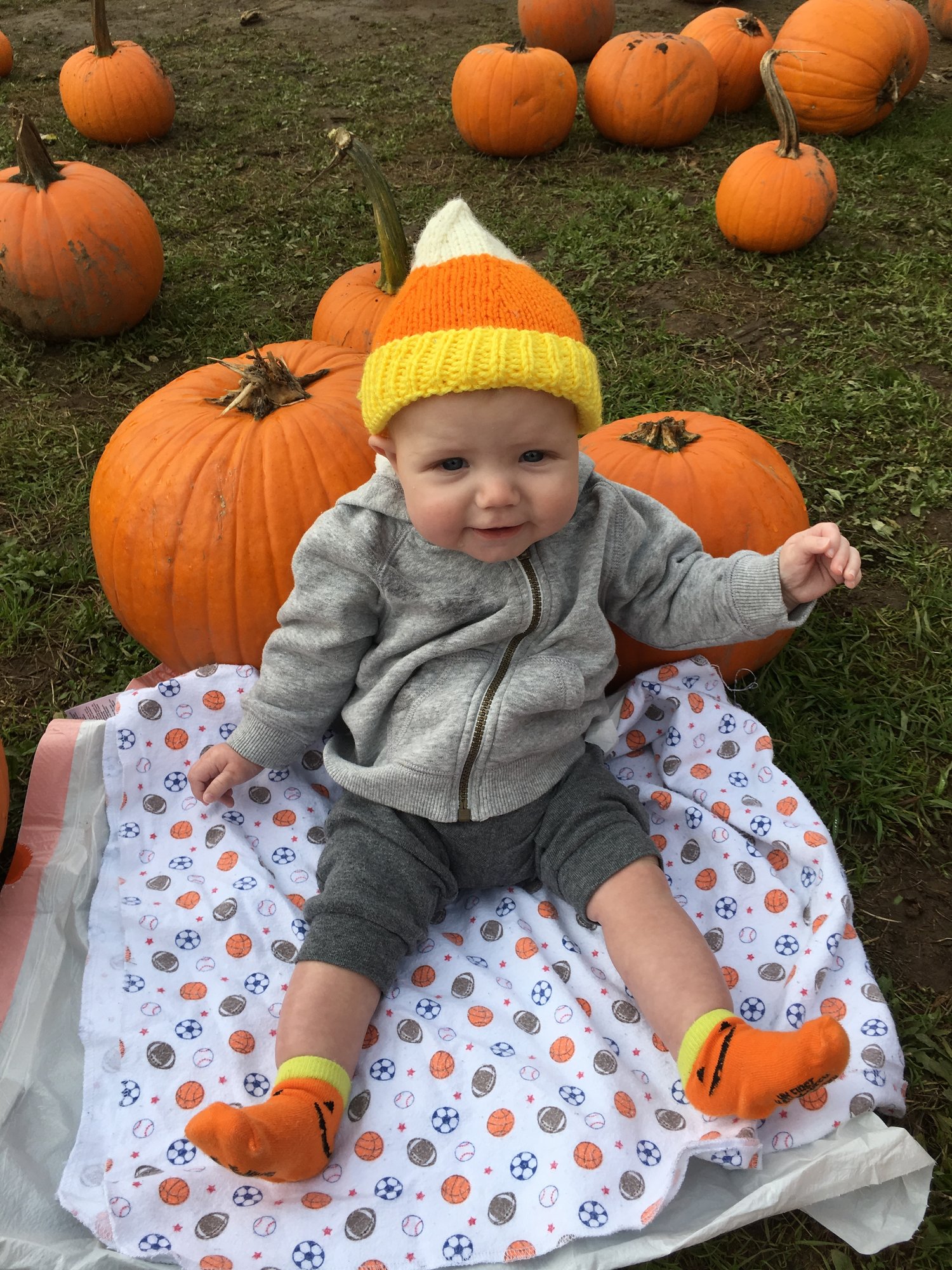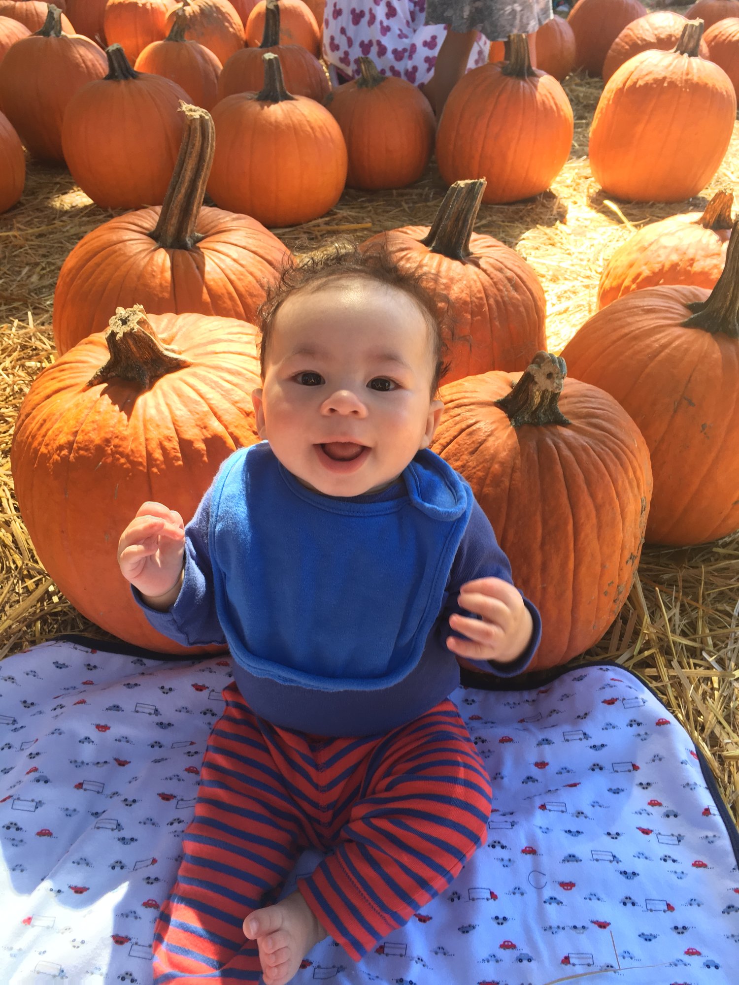 There was a break in the rain yesterday so I took Sam to the pumpkin patch. He was 20 weeks last Friday and just started solids. We started with sweet potatoes and he loves them. Tomorrow we are going to try carrots.