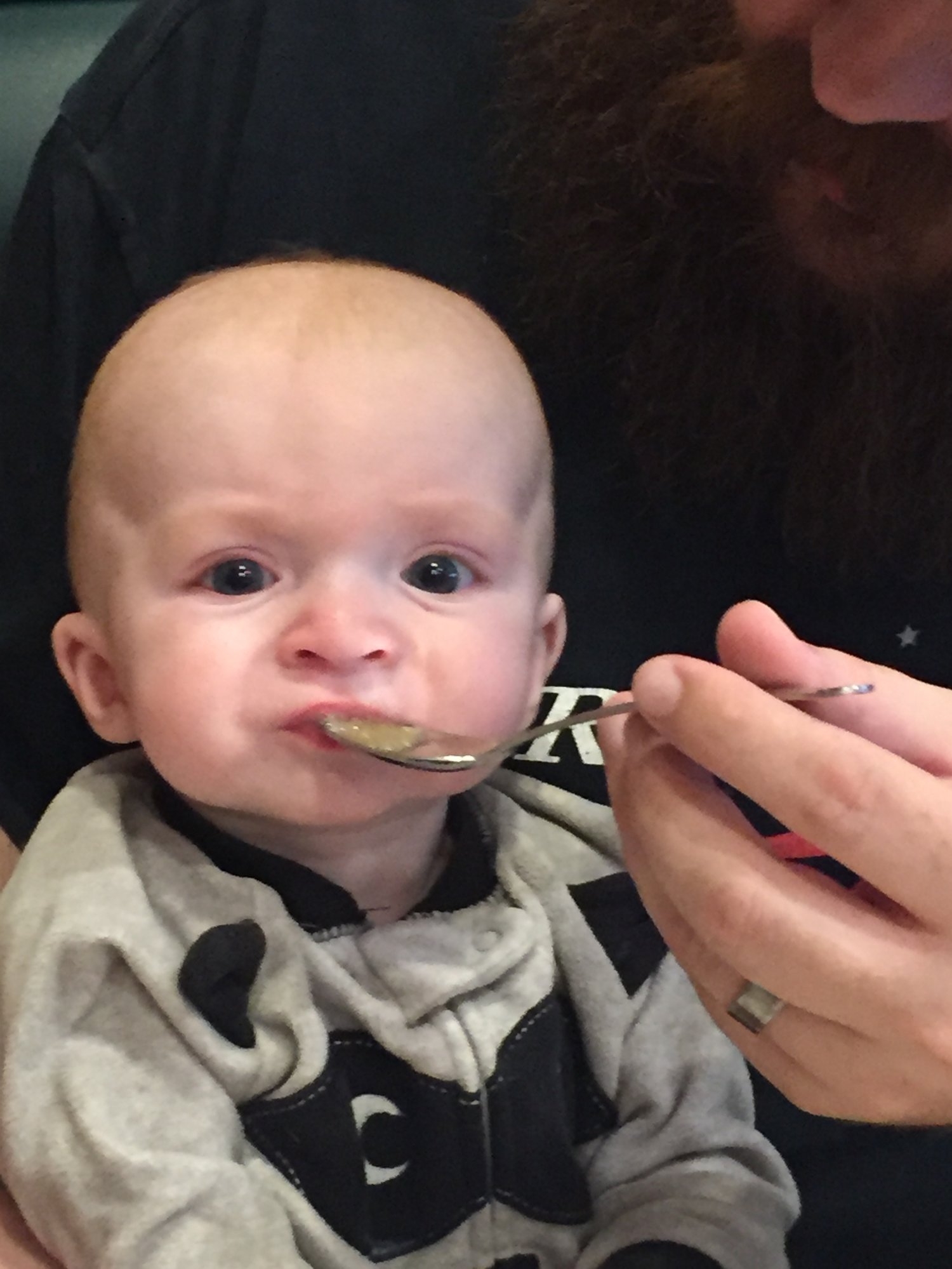 Cameron having his first bite of apple sauce and at a dinosaur exhibit at garden of the gods. We daytripped to Colorado Springs on Friday.