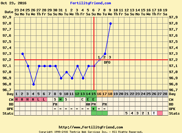 CS/Q: My temp dropped significantly today (after 3 days of high temps) & I also got EWCM which is now making me rethink my O date. I'm starting to wonder if Day Light Savings fooled me into thinking I O'd. I'm gonna wait until tomorrow before adjusting my DPO or moving back to WTO. I'm hoping it is a fluke!