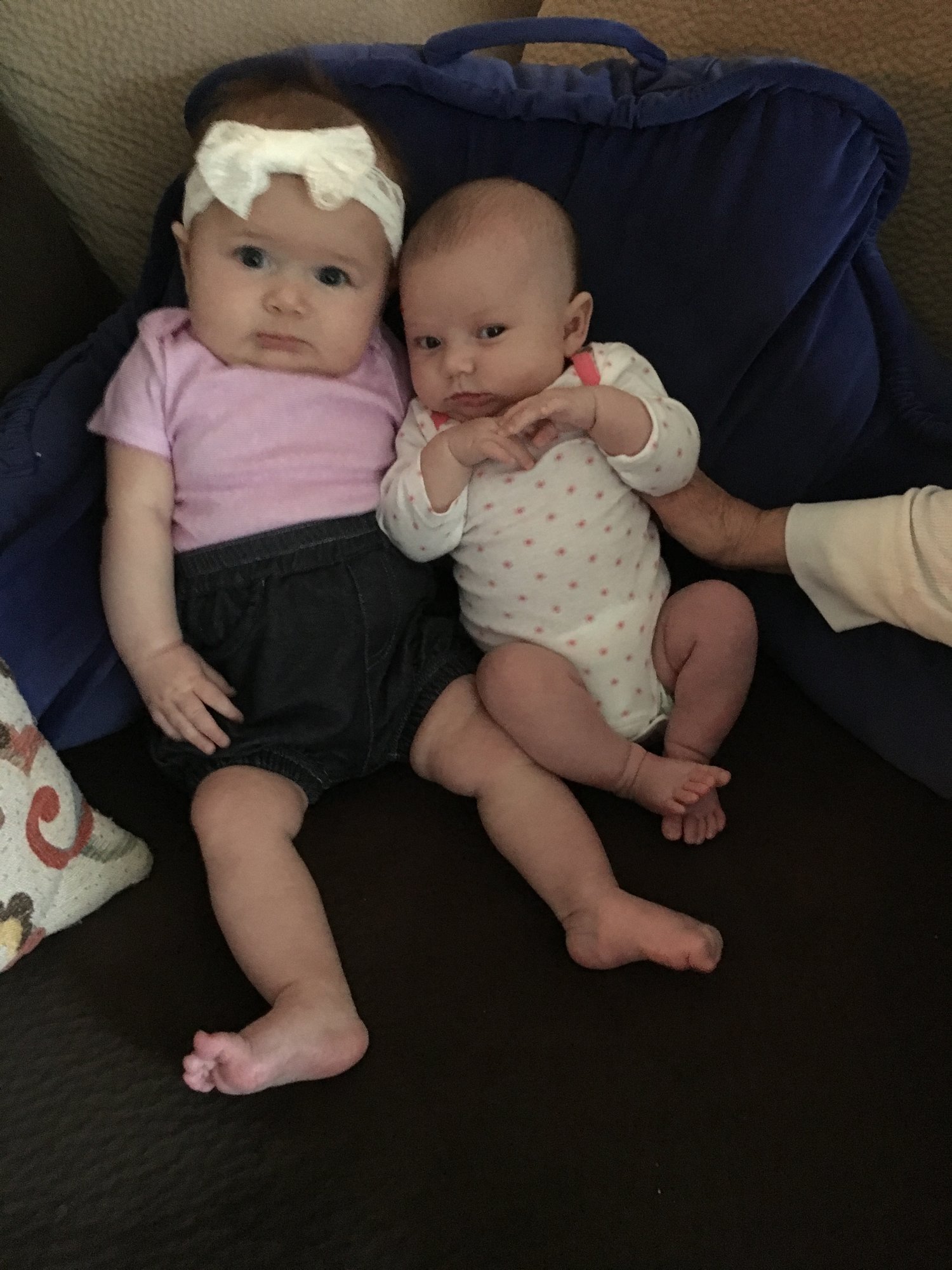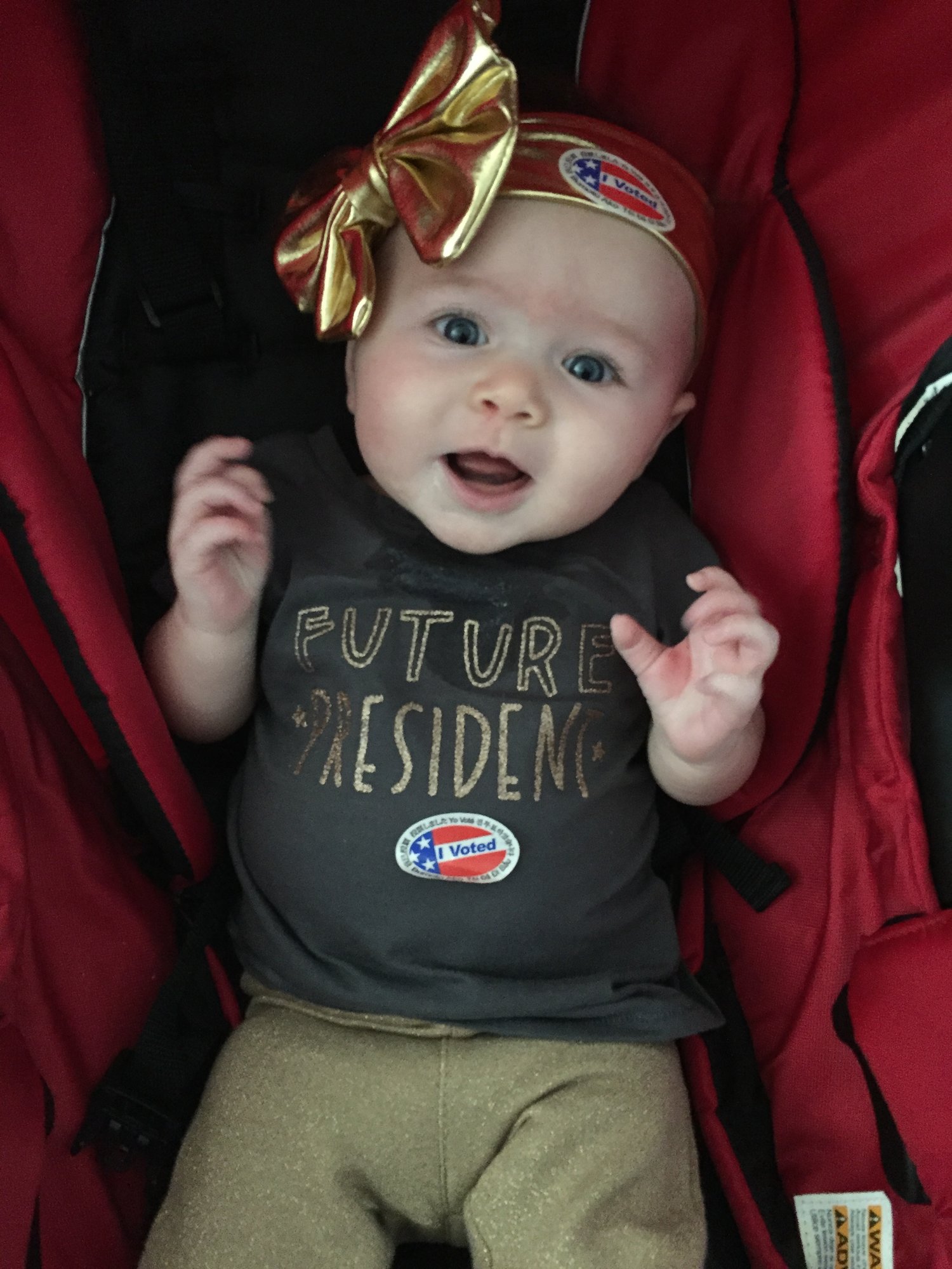 Little late but she enjoyed going to our polling place and smiling at everyone. Our little future president. Then we went to visit mommys best friend who's daughter Rowyn is exactly 3 months younger than lily. Rowyn is the same size lily was at birth and she's 6 weeks old. 9 lbs and 21 inches. Soon to be best friends.