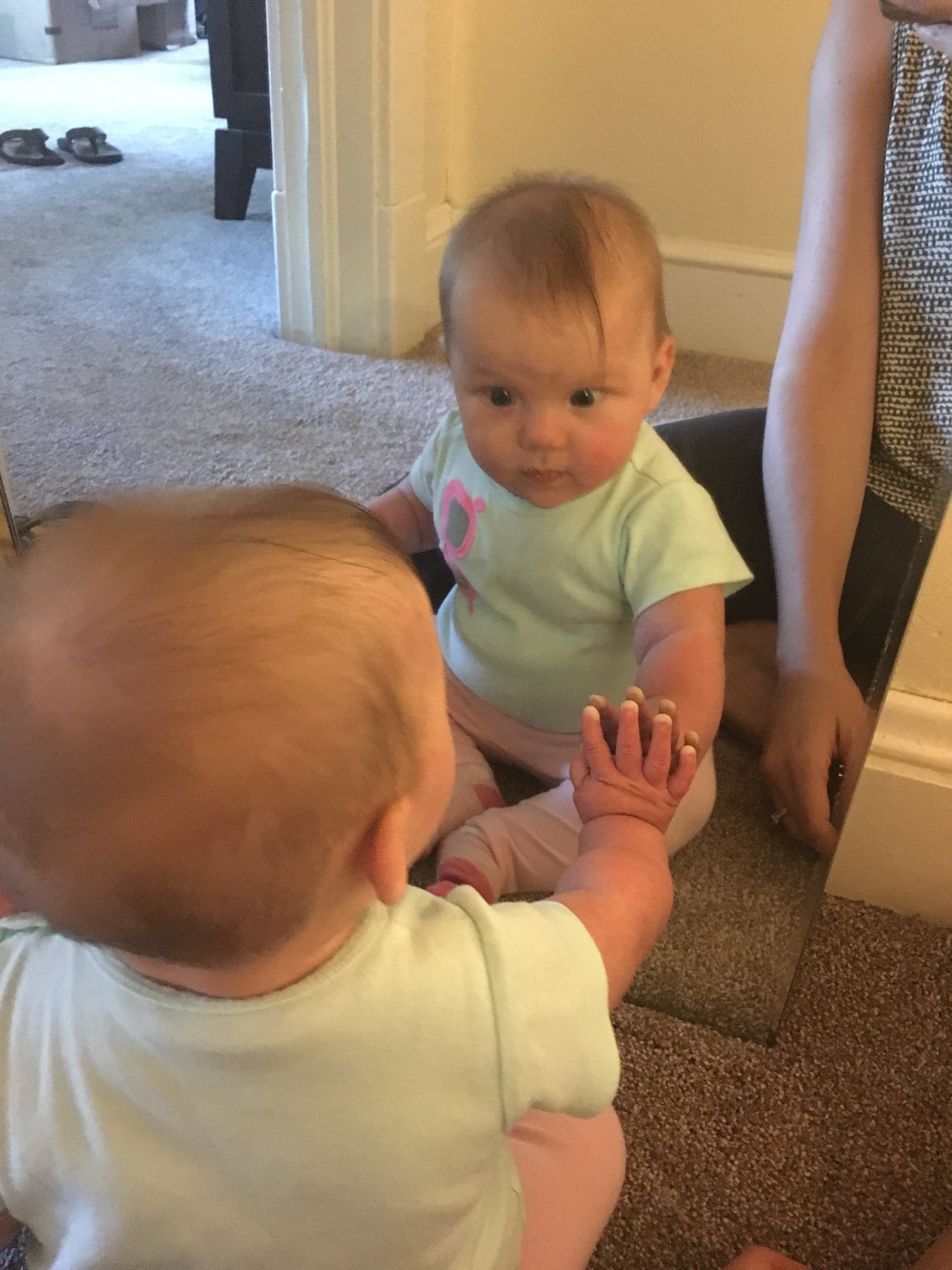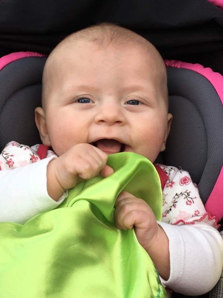 Miss Lydia! 20 weeks hasn't quit mastered the roll yet but we are darn close . She is our chunk and is still only bf. she loves to stand and would rather be on her feet then anything else . She also fights sleep big time .. my Moto for her is "I'm not even tired"... always ss L