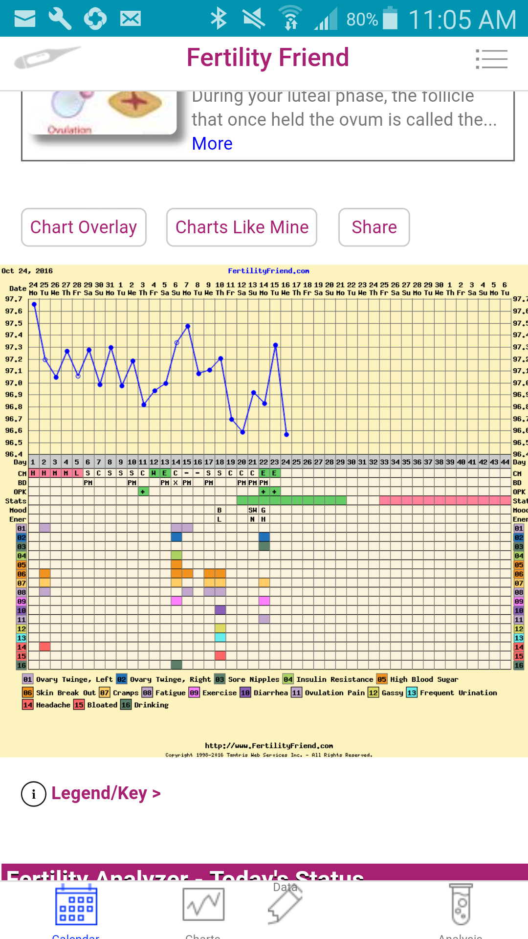 Peedy: I have not heard of Yono, is it like Ava? I may look into one. This is my first cycle of charting temps and I have crazy sleep patterns (wake up a lot during the night). I don't know how normal or atypical my temps are, but I am not able to take it after 4 consecutive hours of sleep. So depending on how the next few months go, I may buy something like Ava to help keep track of it.