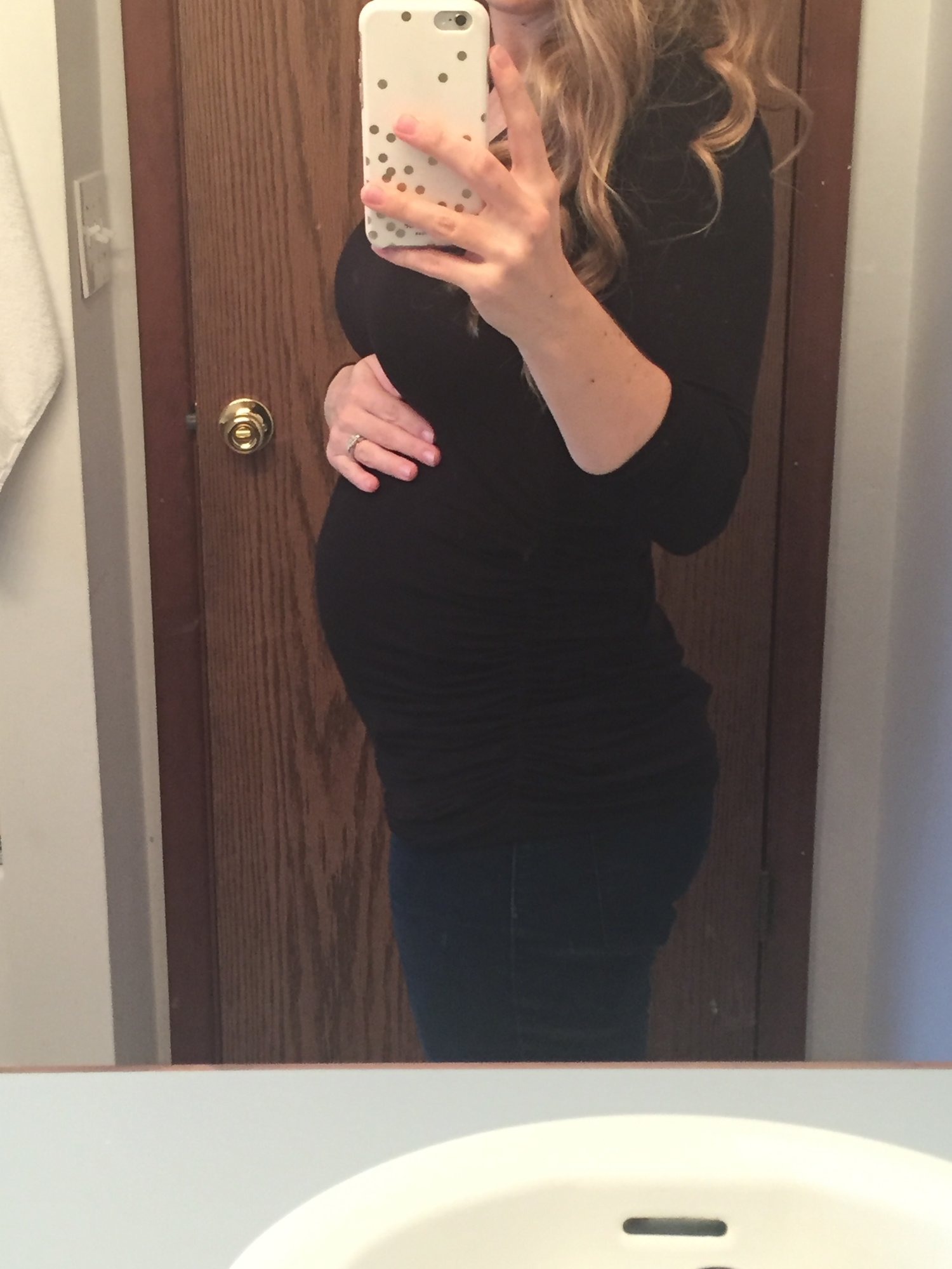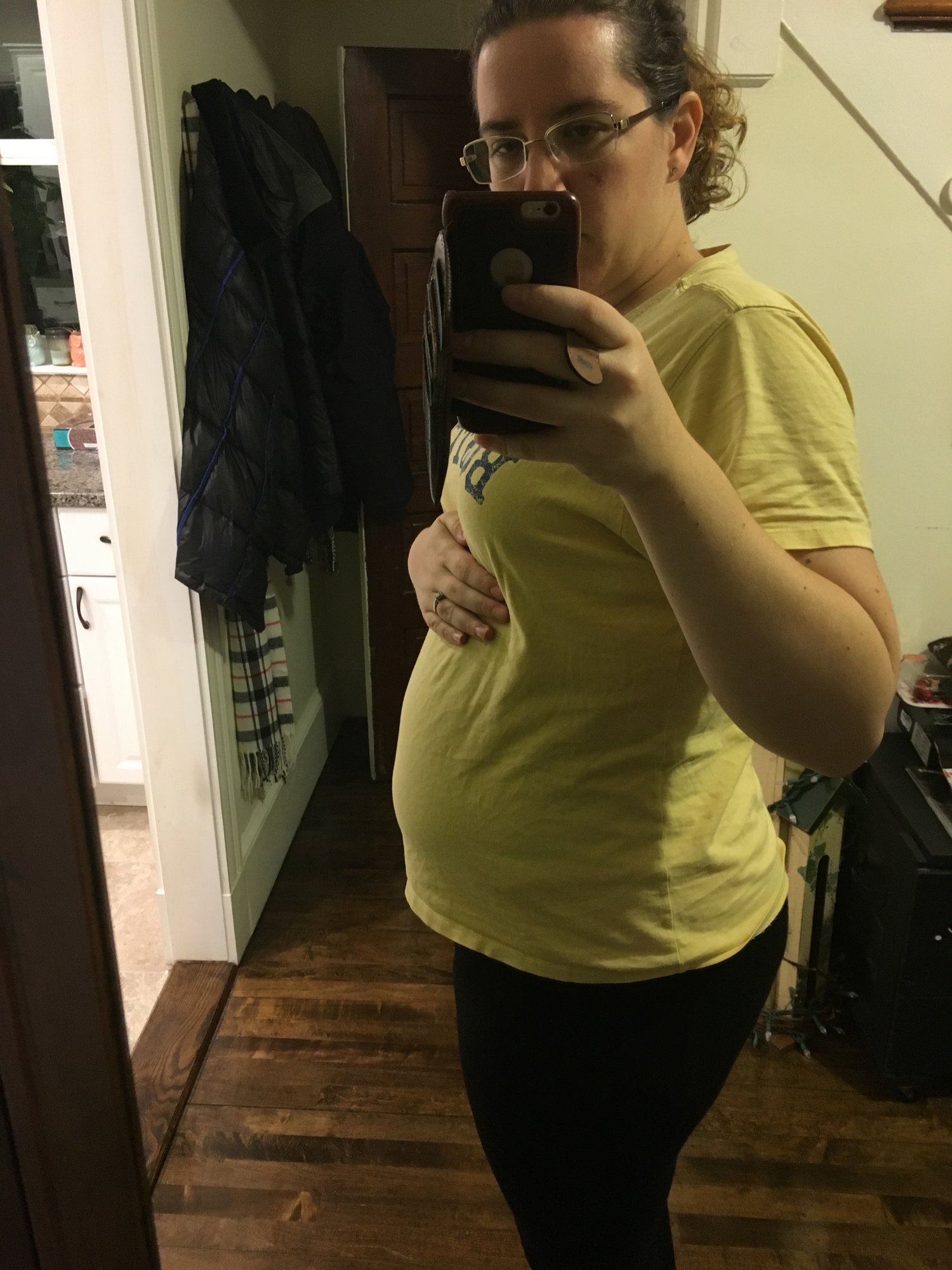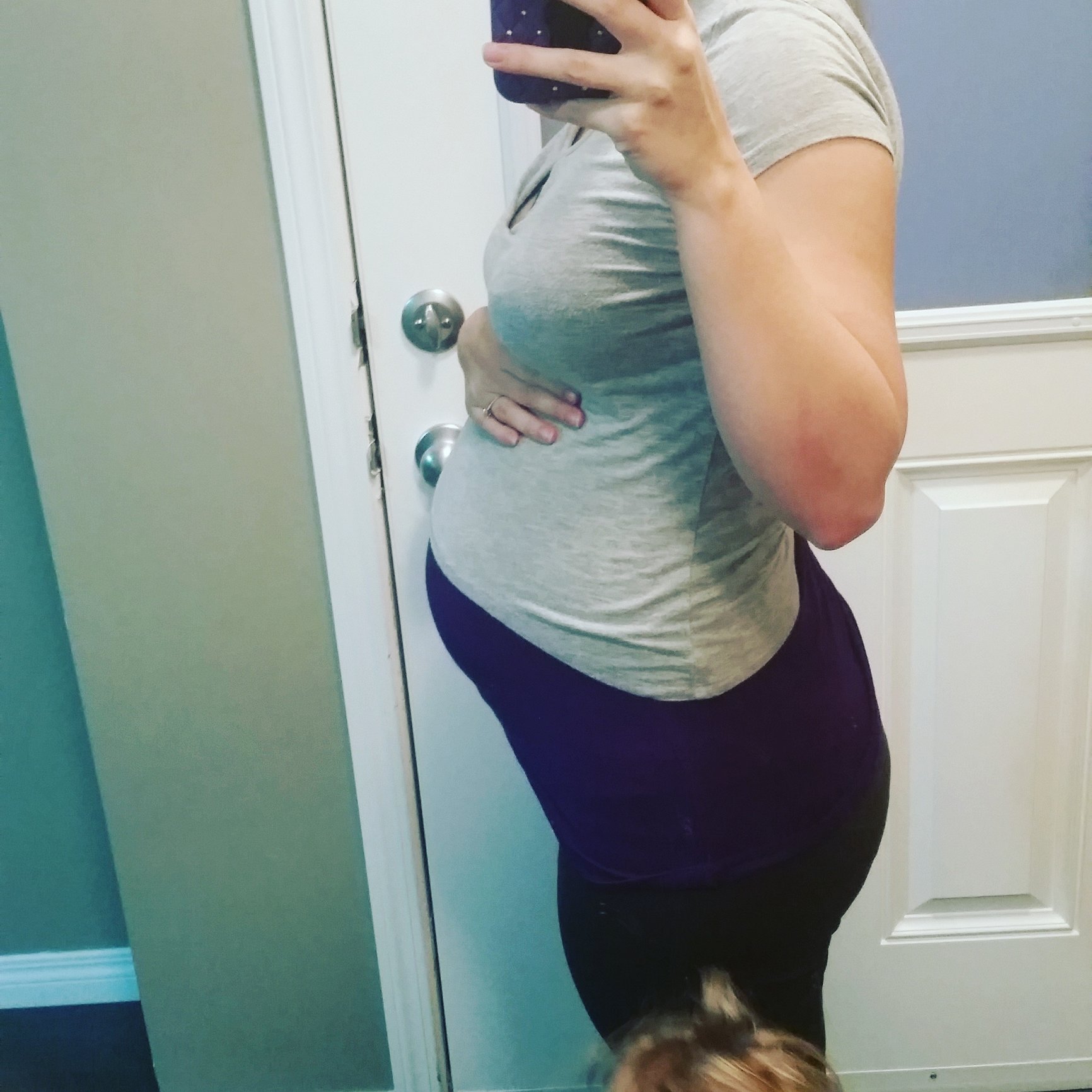 Starting to push up a bit. I wasn't this big until about 25 with DD. I still can't believe she's already halfway done baking.