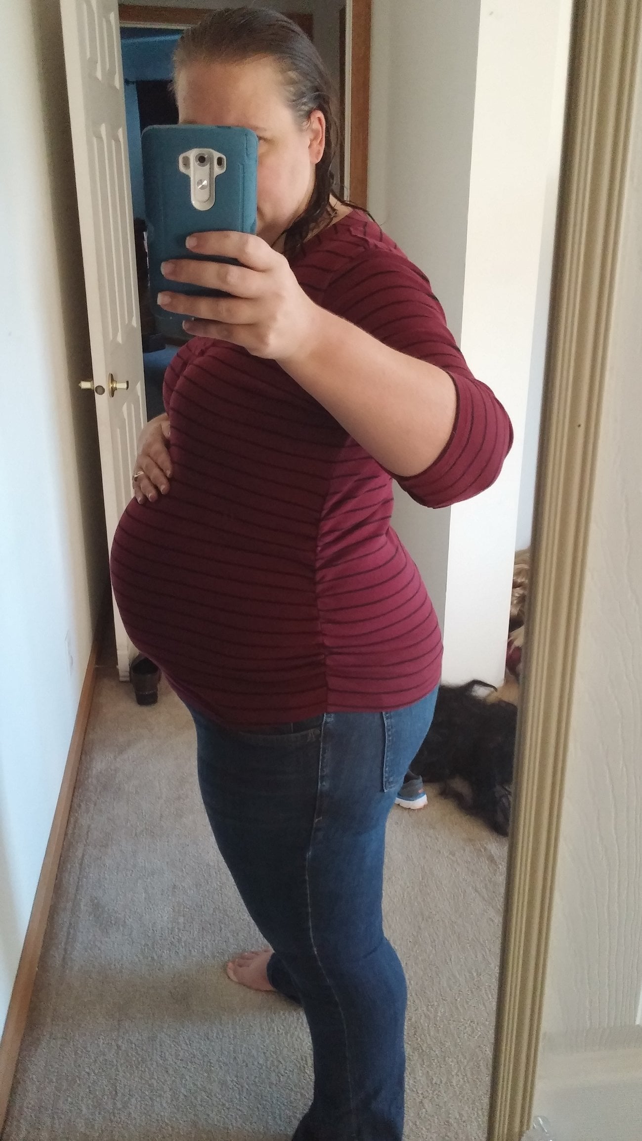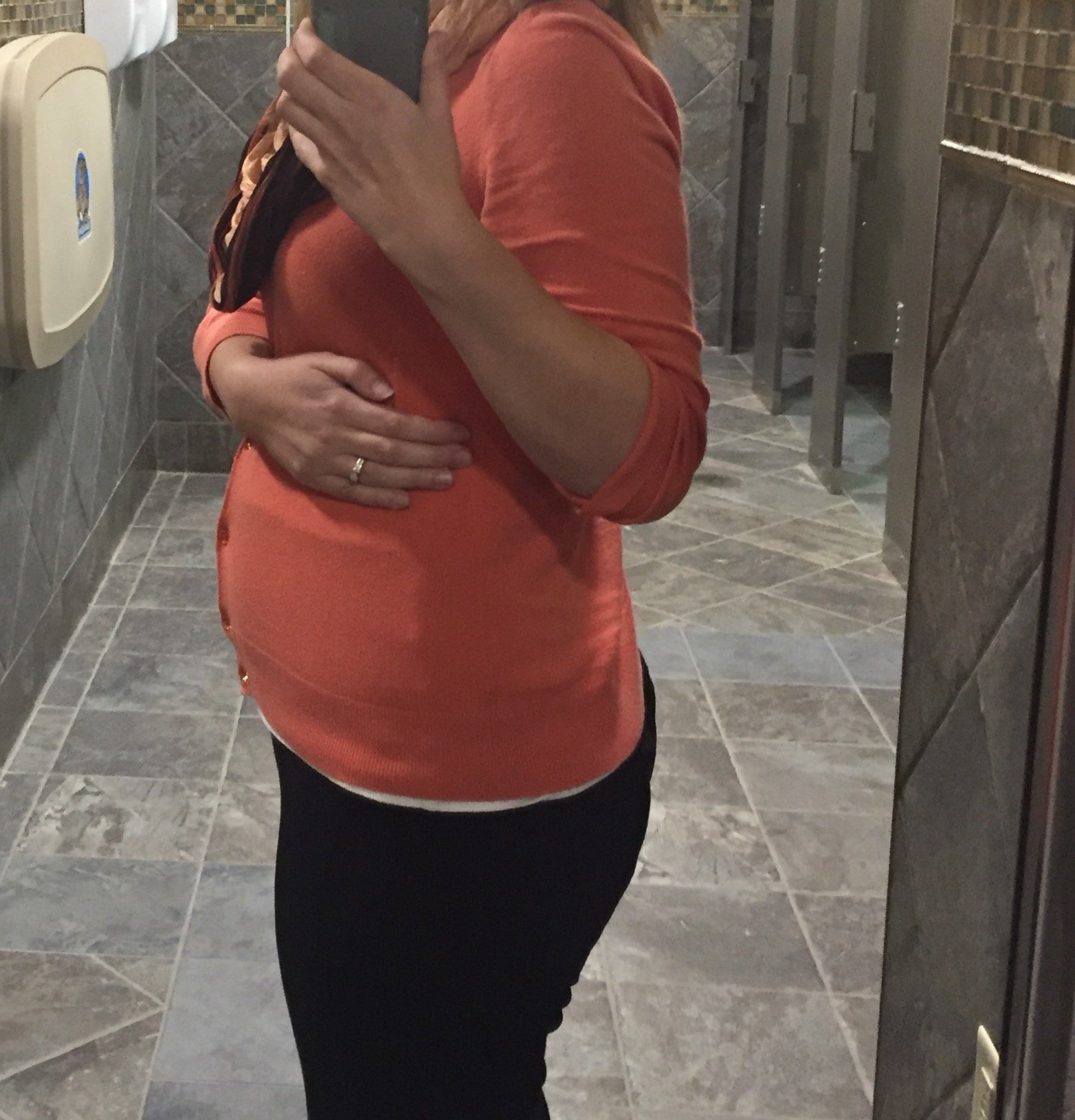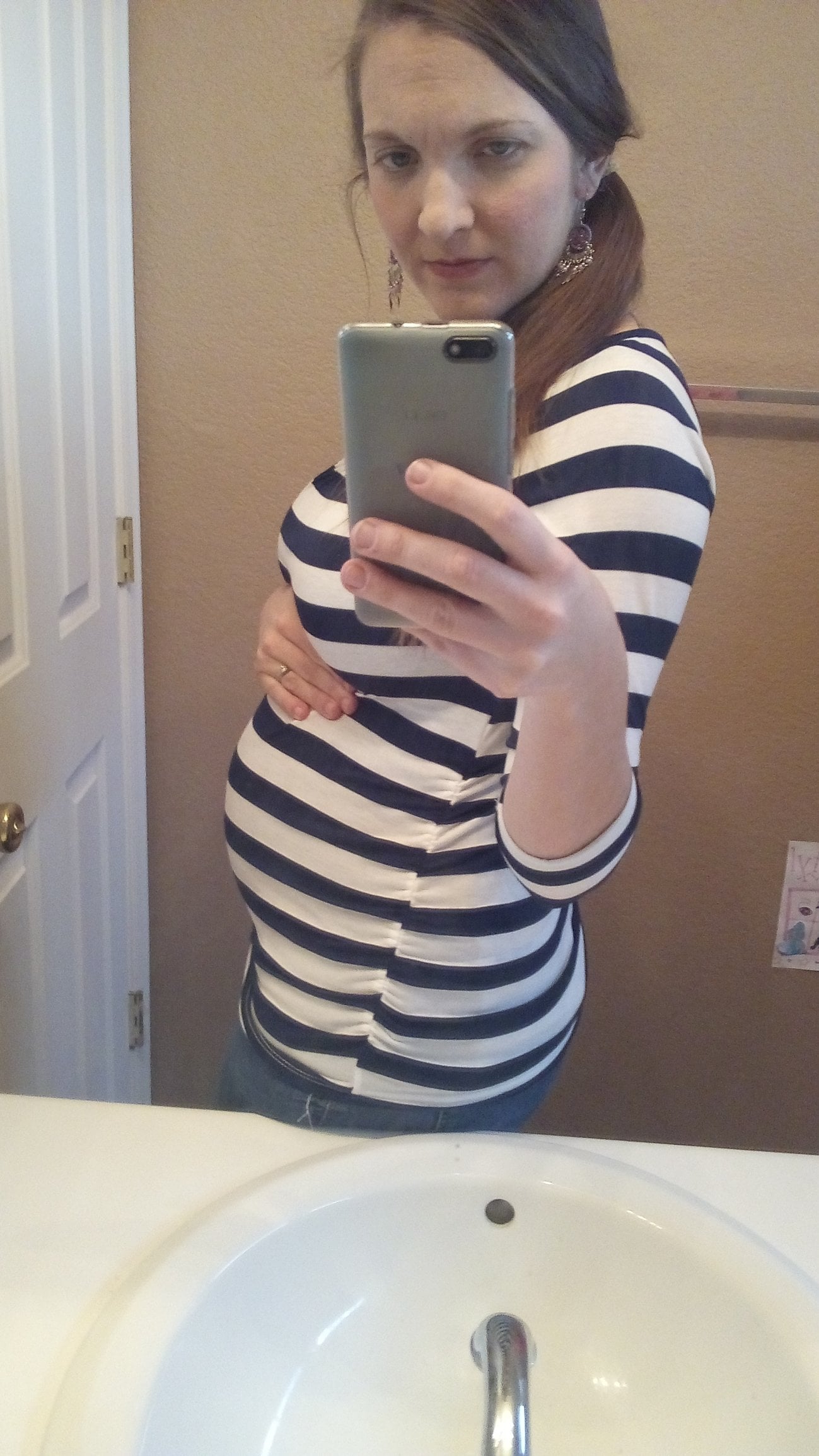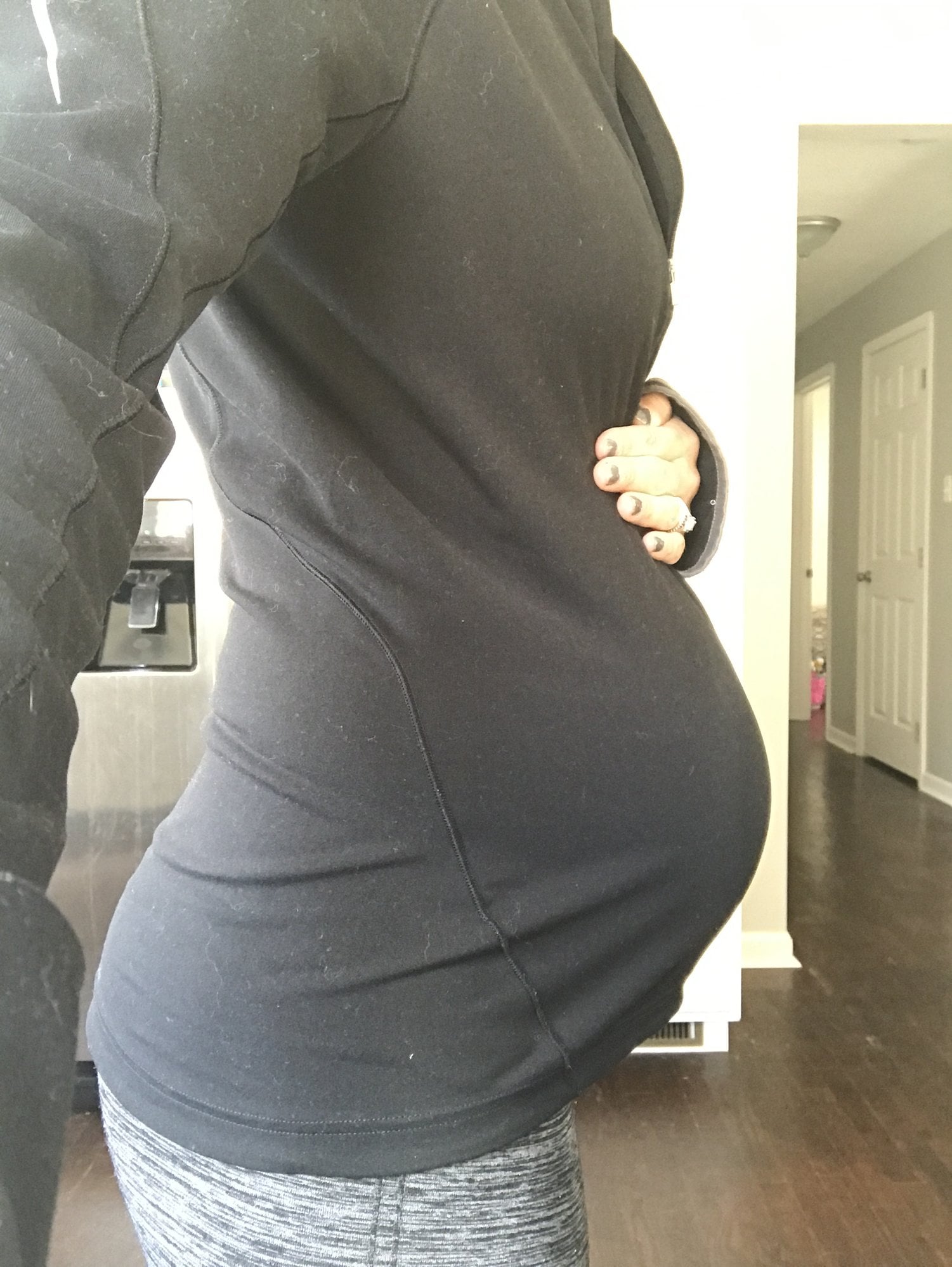 Starting to push up a bit. I wasn't this big until about 25 with DD. I still can't believe she's already halfway done baking.