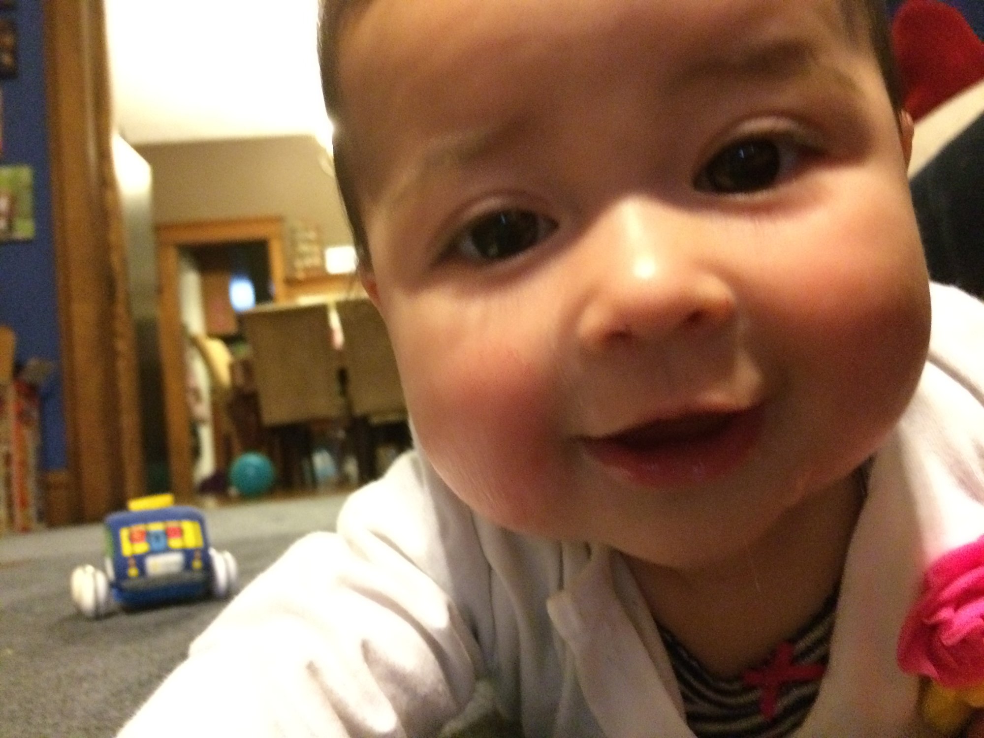 Nadia playing on her grandma's floor