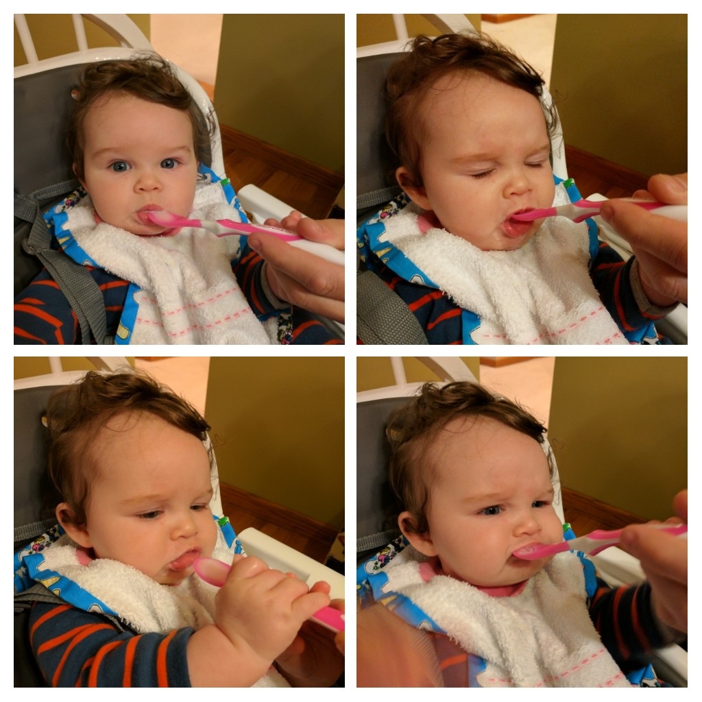 Audri tried solids for the first time and loved it. She made the funniest faces and blew raspberries in it.