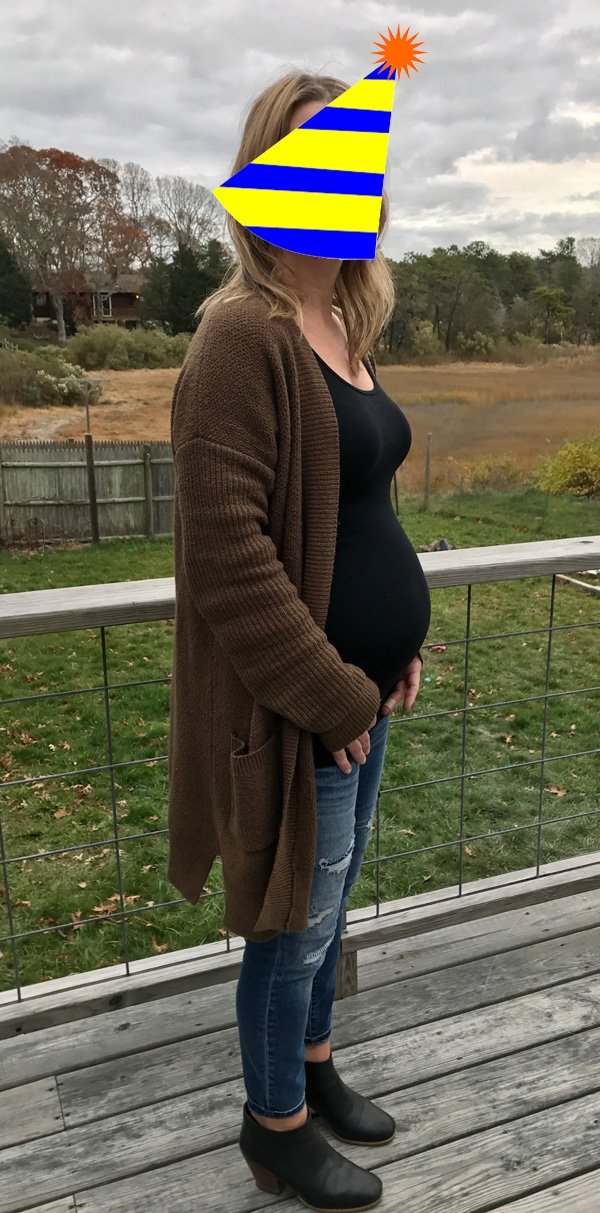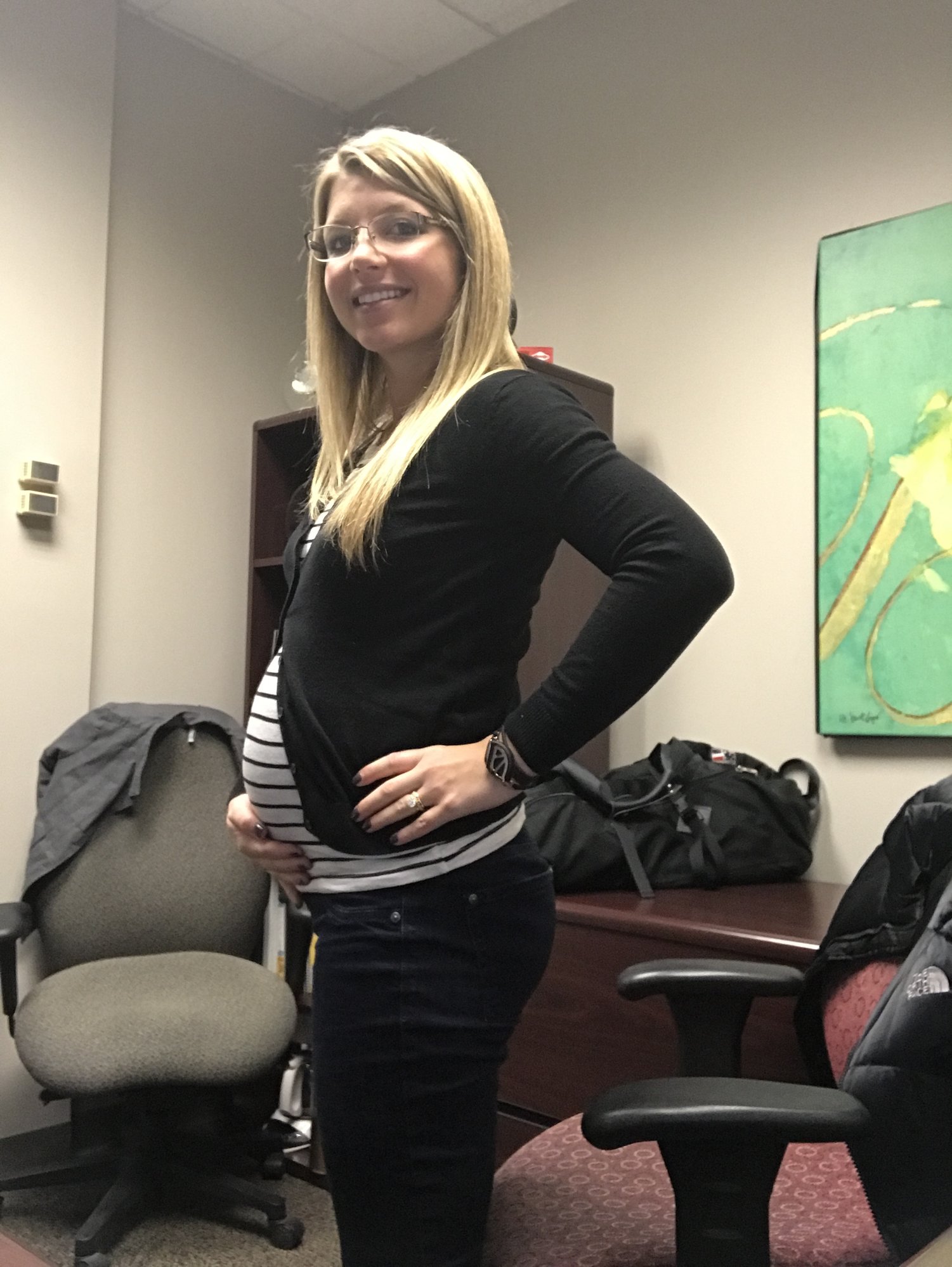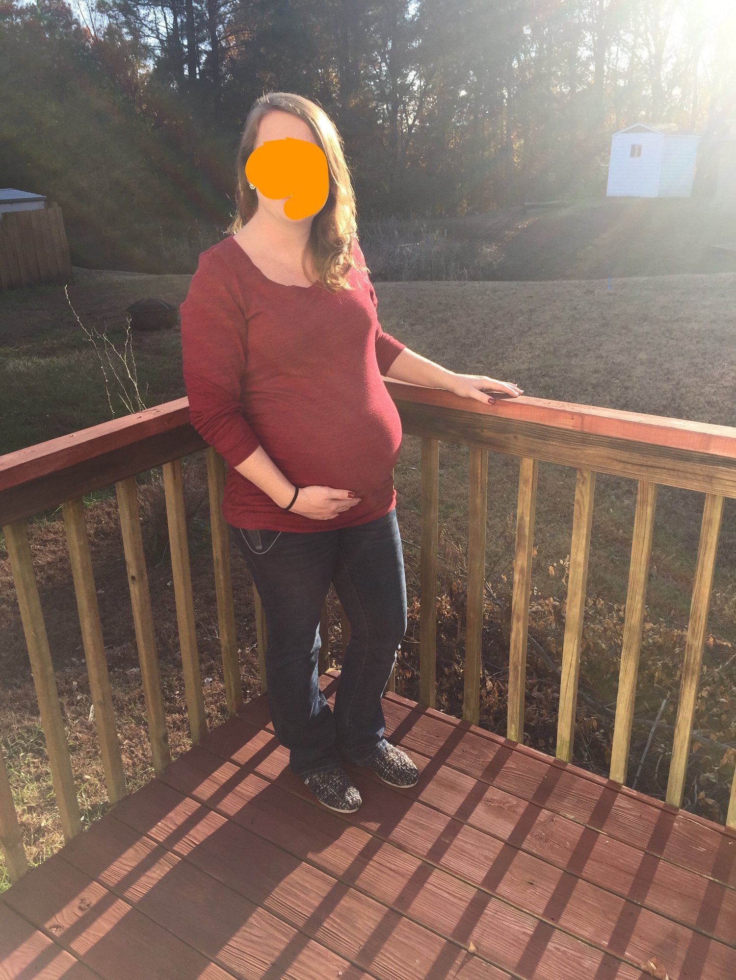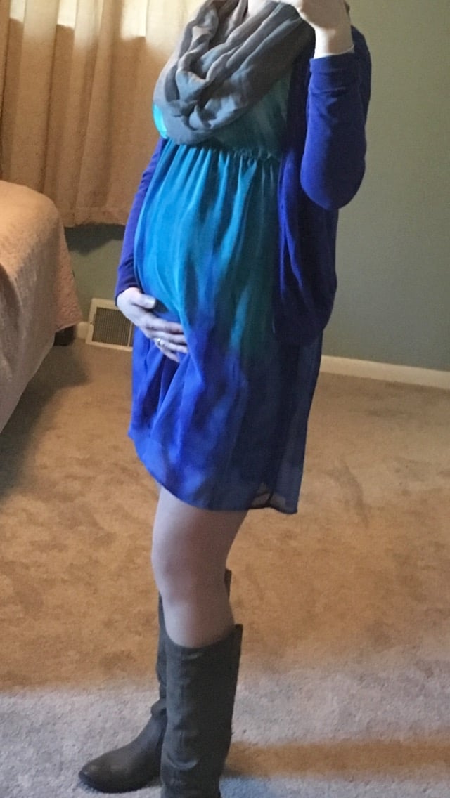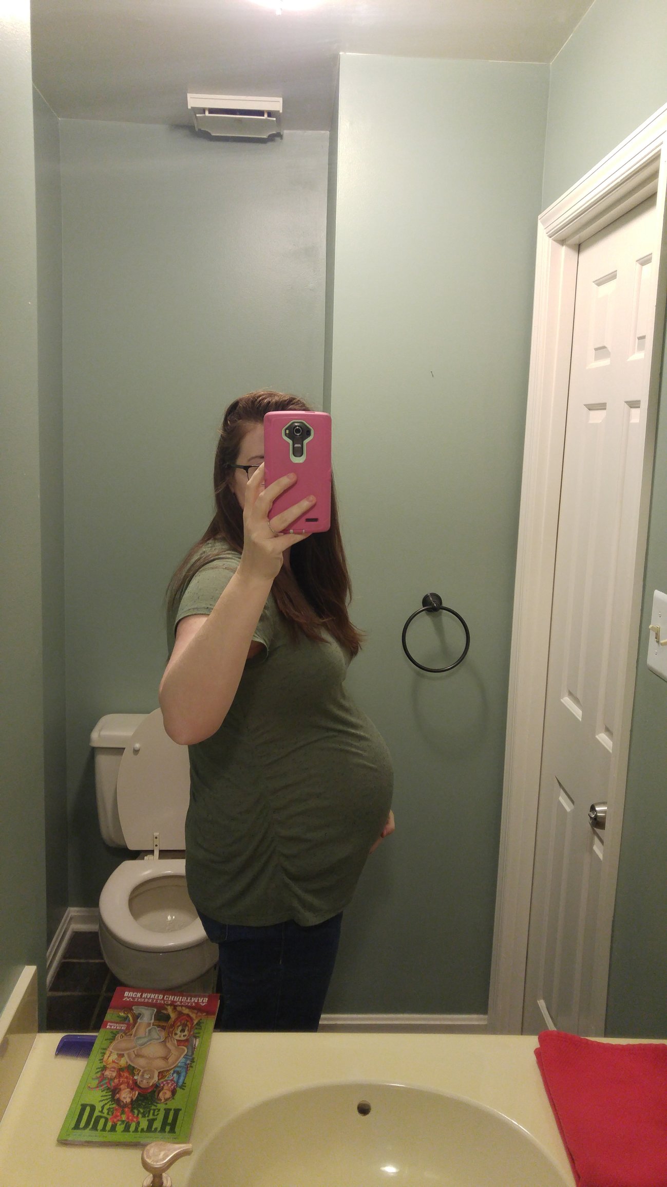 Third Time Mom , 26 weeks on Friday! The sweater made me look twice the size so y'all get bare belly and can you tell my boobs are almost as big as my belly?! Goodness me, they can stop growing any day now. *edit to explain bare belly