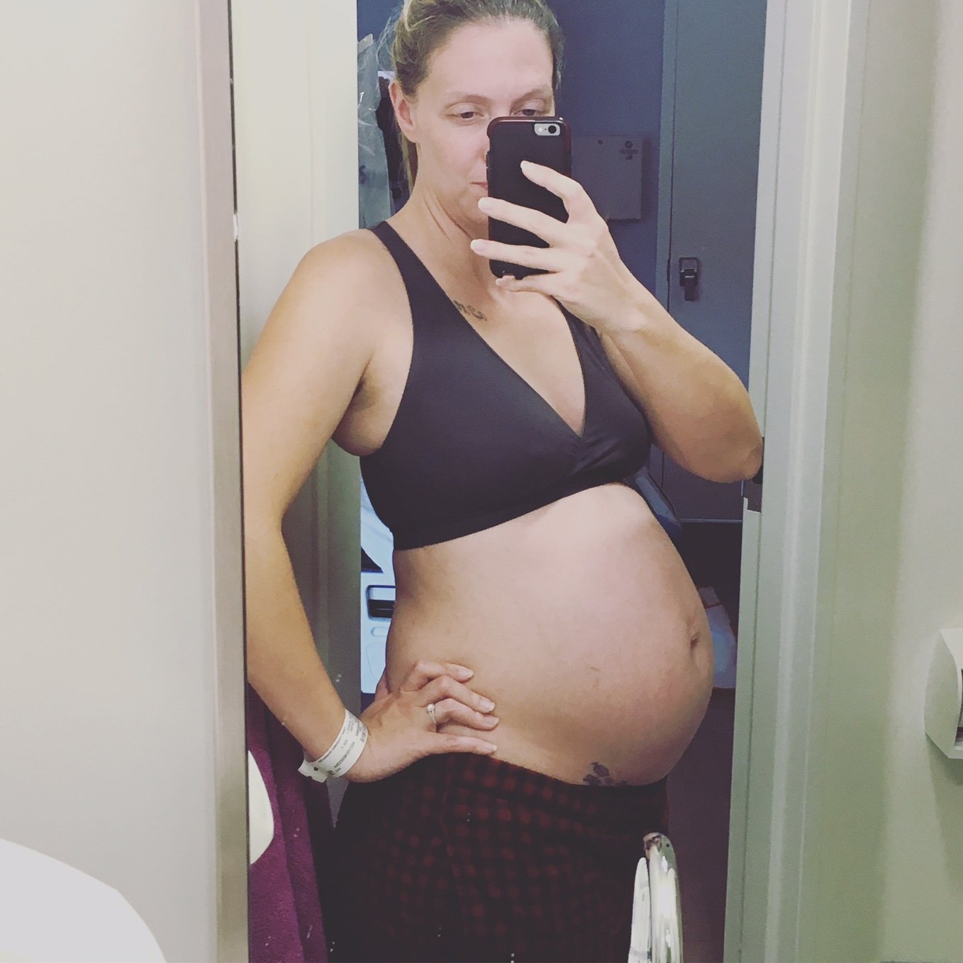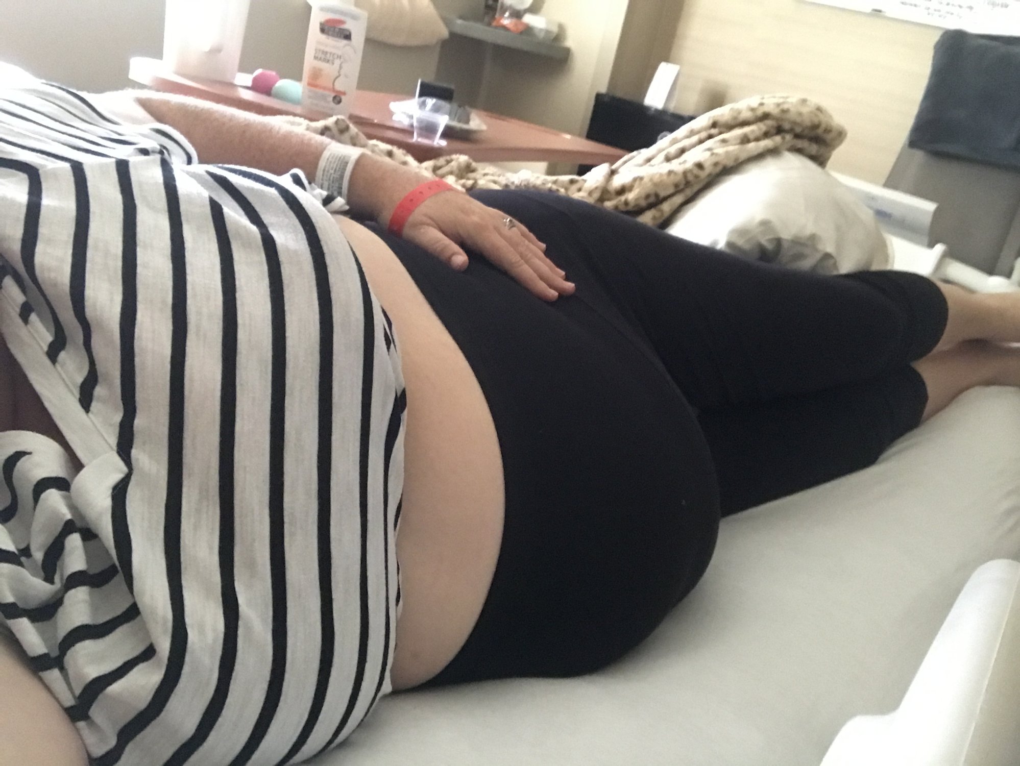 Bump on bedrest. I think I look bigger because I'm laying down. At least I hope that's why!!