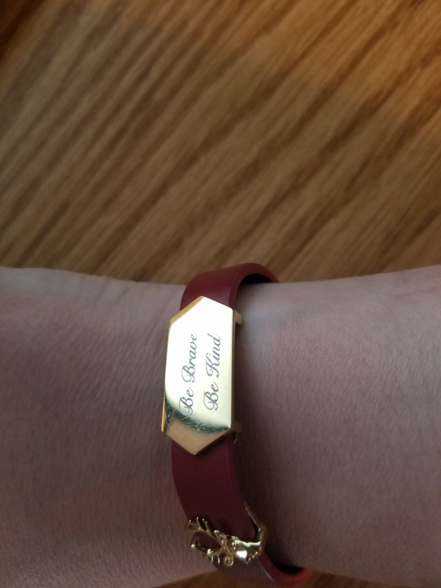 Is there any jewelry that you wear on a regular/daily basis (other than engagement or wedding rings)? I wear the bracelet in the attached picture almost daily. The charm says "Be Brave Be Kind" - it keeps me grounded throughout the day and is sort of my "mantra" I guess. The other charm is a little deer, it reminds me of my grandfather and "home" (where I grew up). And of course my fitbit