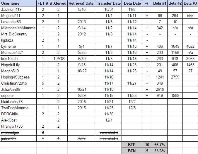 FET#1 May 2016 BFP EDD 2/4/17 - TWINS- MC July FET#2- 11/9/16 BFP- MC FET#3- 2/8/17 BFP- MC