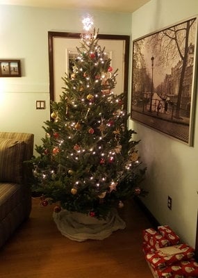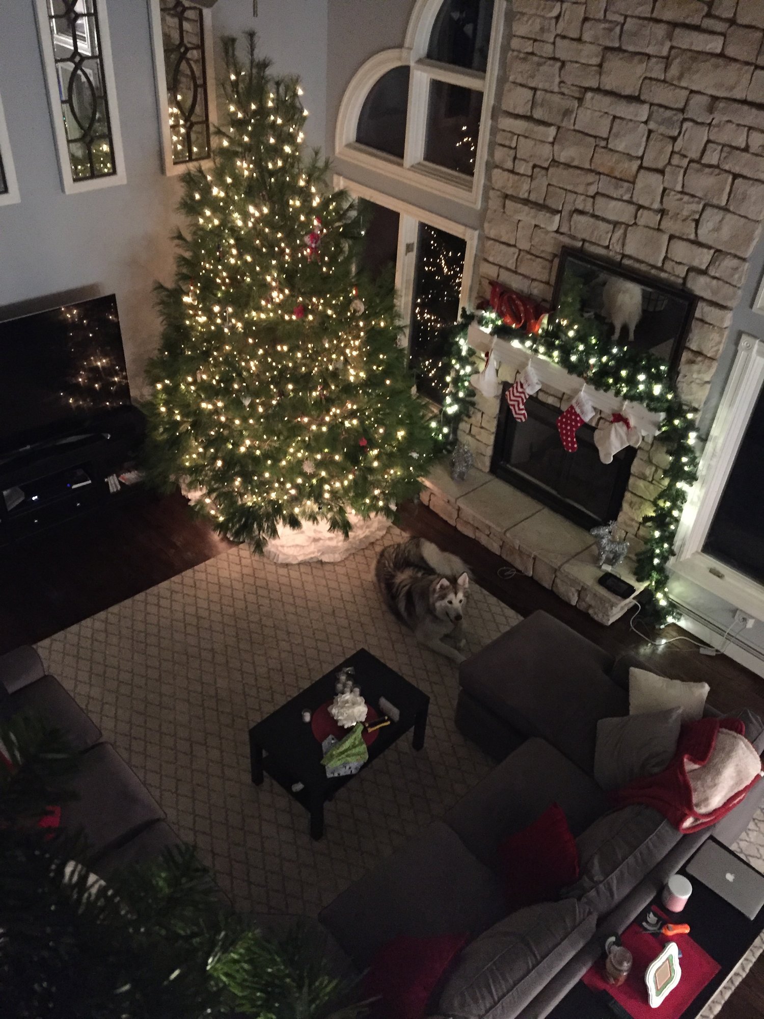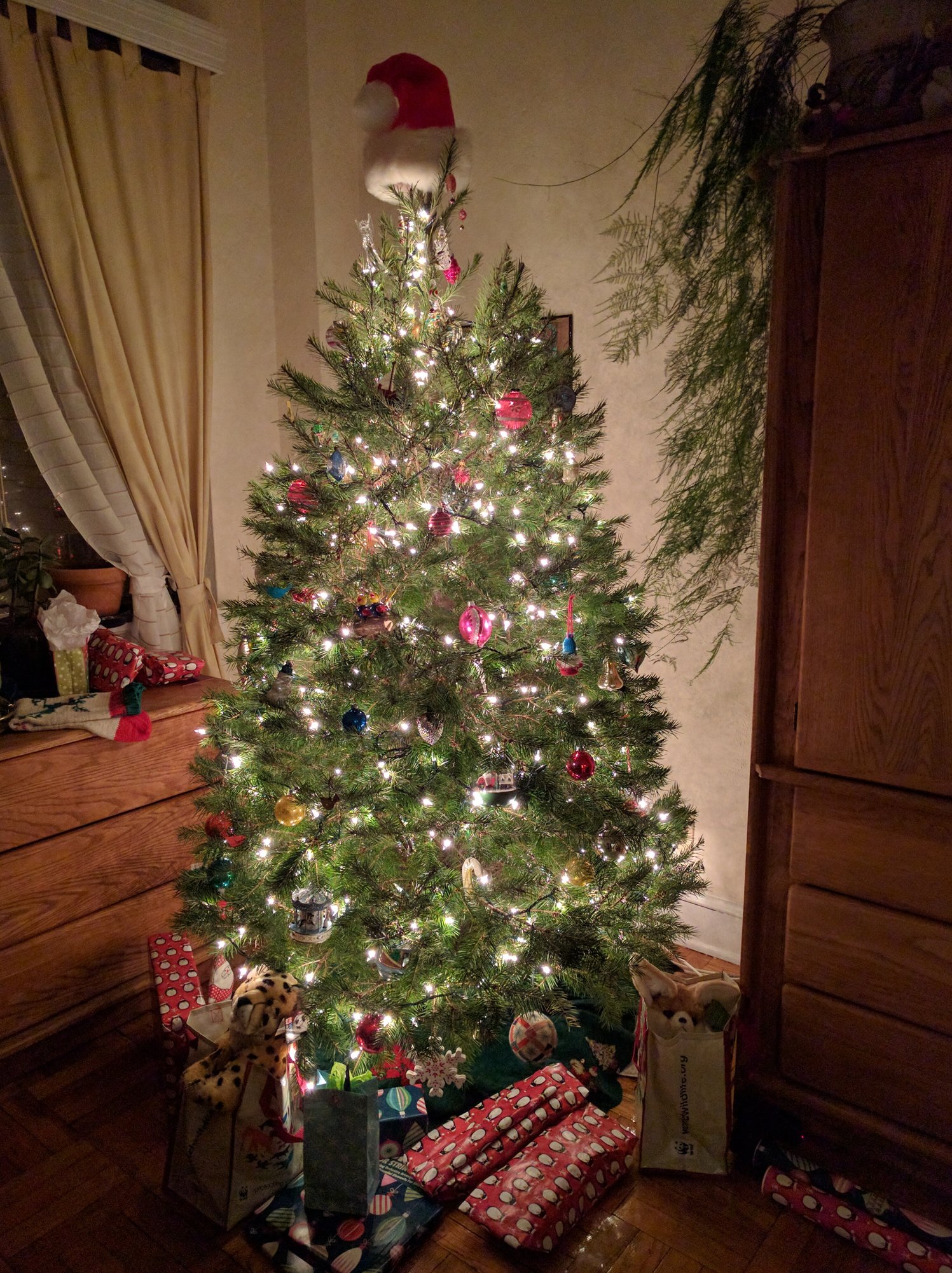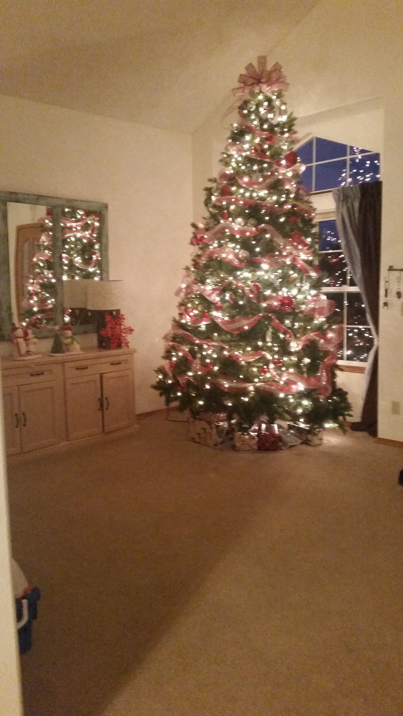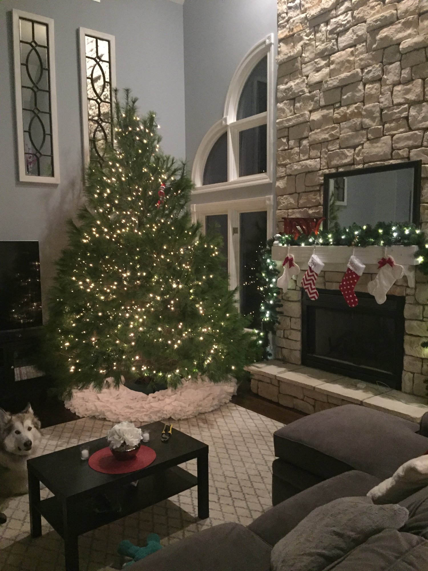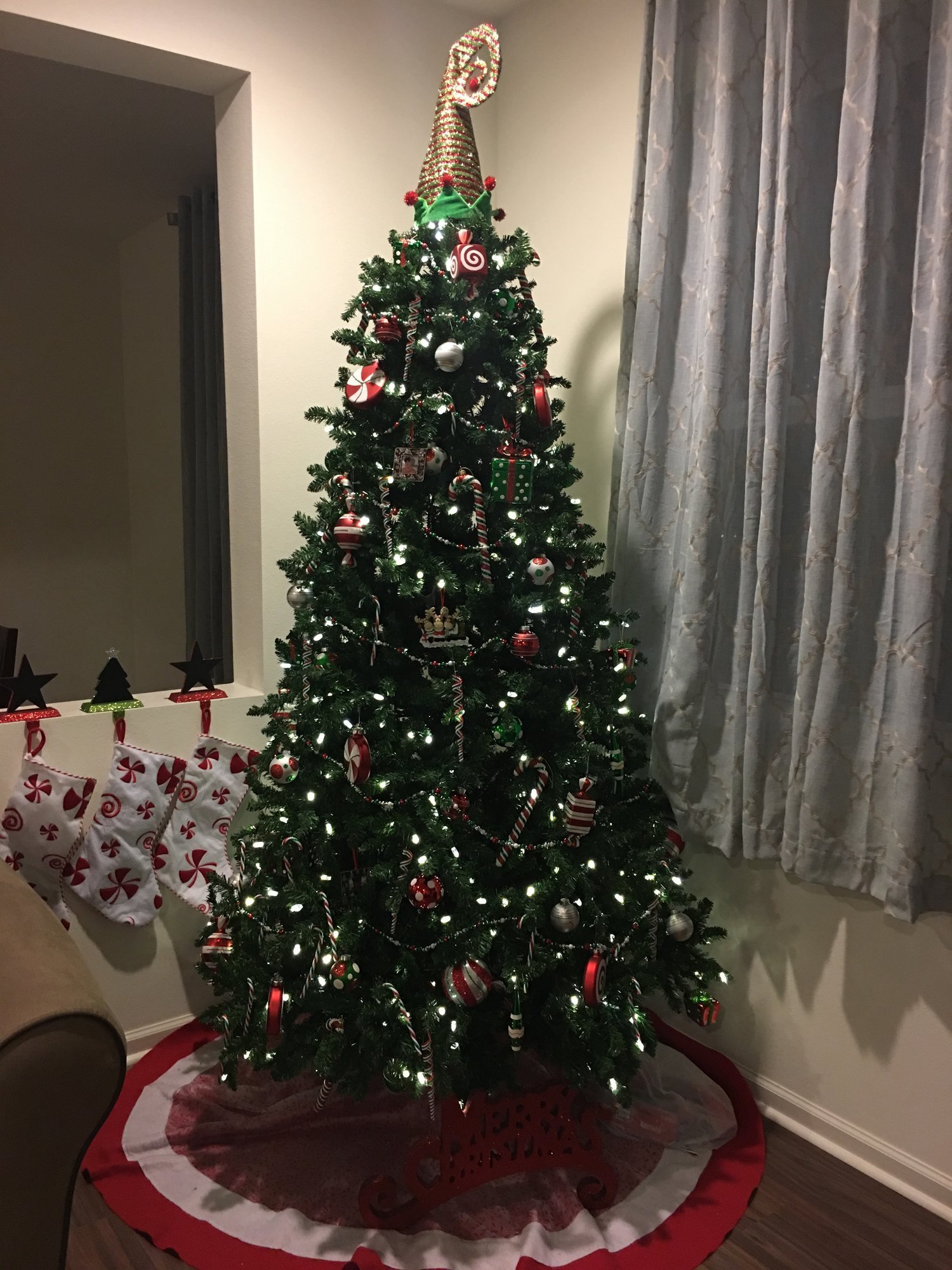 • @kns1988 thanks!  We couldn't find anything that matched the majority of our ornaments for a topper so we went with the Santa hat.  The tree is 12 ft.  We had to get a bigger ladder to decorate it...not a lot of foresight went into buying it obviously ;)