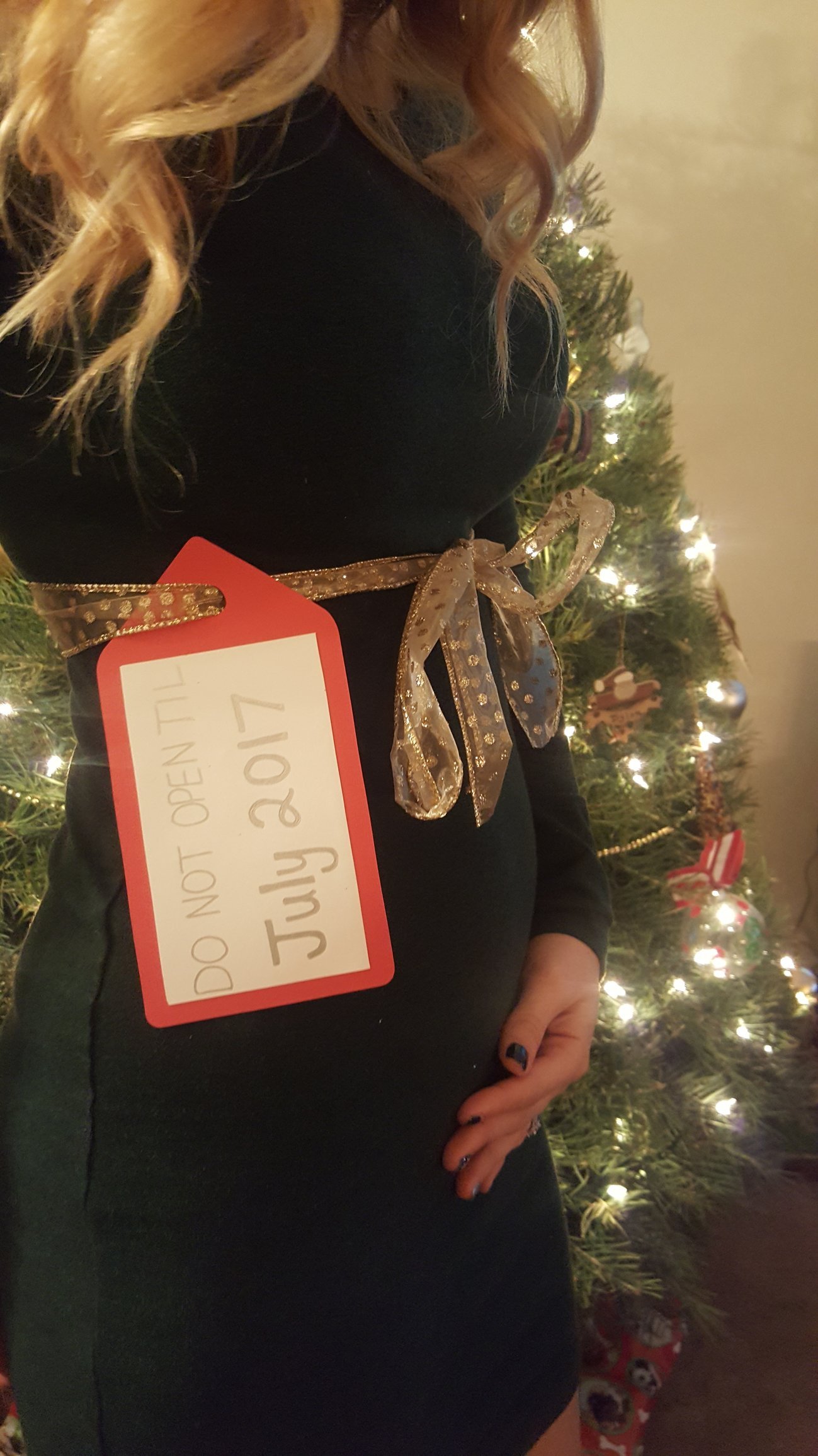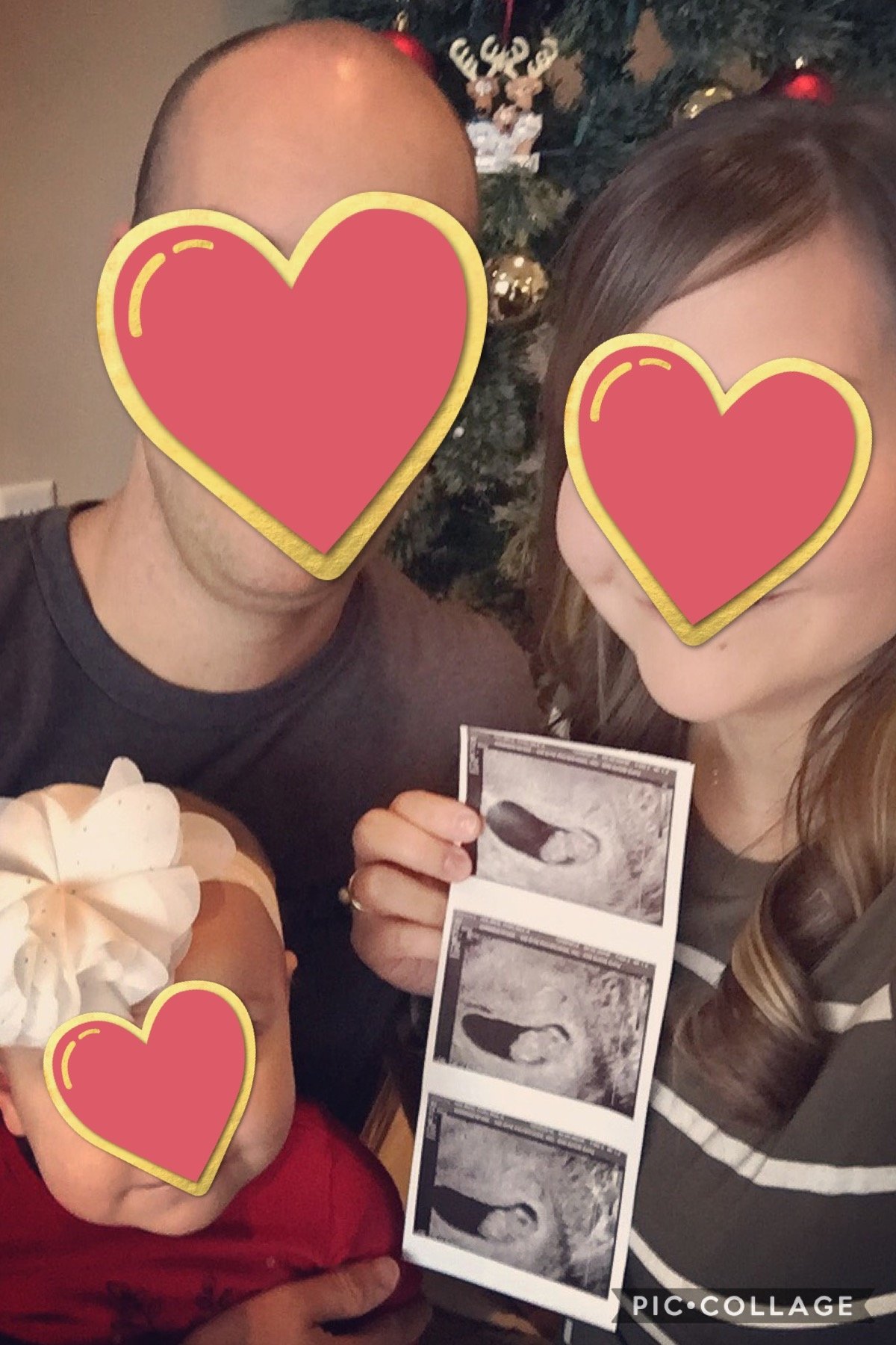 We announced to the rest of our family on Christmas Eve/Day and everyone was shocked. I gave the grandparents a framed photo of DH and I holding up a onesie. Our Facebook announcement was a photo of us holding a car seat and standing in front of DH's 2-door Jeep with the caption "We're gonna need more doors..." it was really well-received and I feel like everyone was shocked!! It's a little bit of a relief now that it's out in the open.