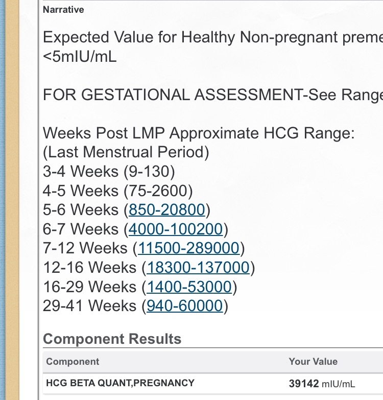 **Update....Just got my 2nd draw labs which are at 47,000. I dont know if its good or bad. my cramps are still there but light and my spotting is almost gone but makes an appearance when i have a bm.