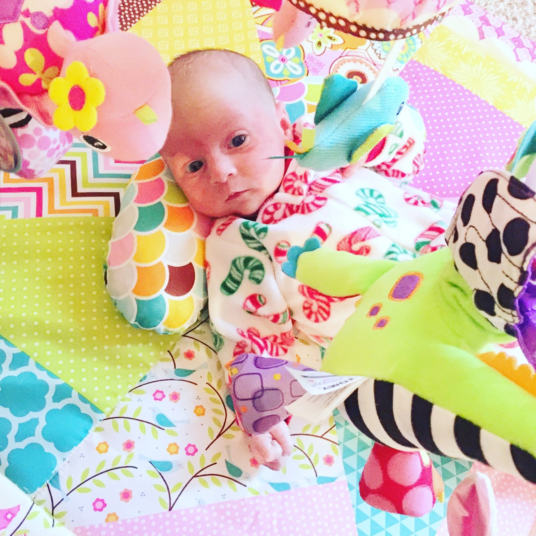2 weeks old today. Starting to focus on touching toys and looking at herself in the mirror