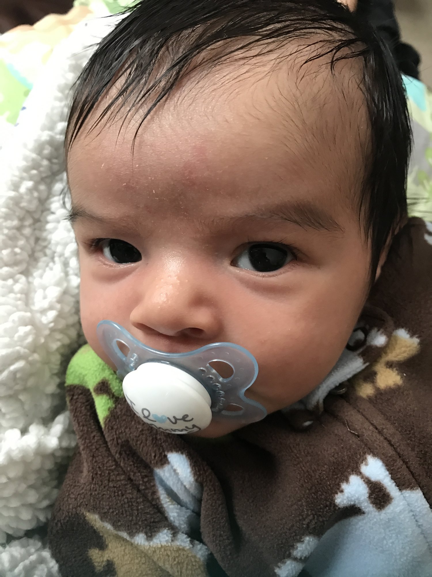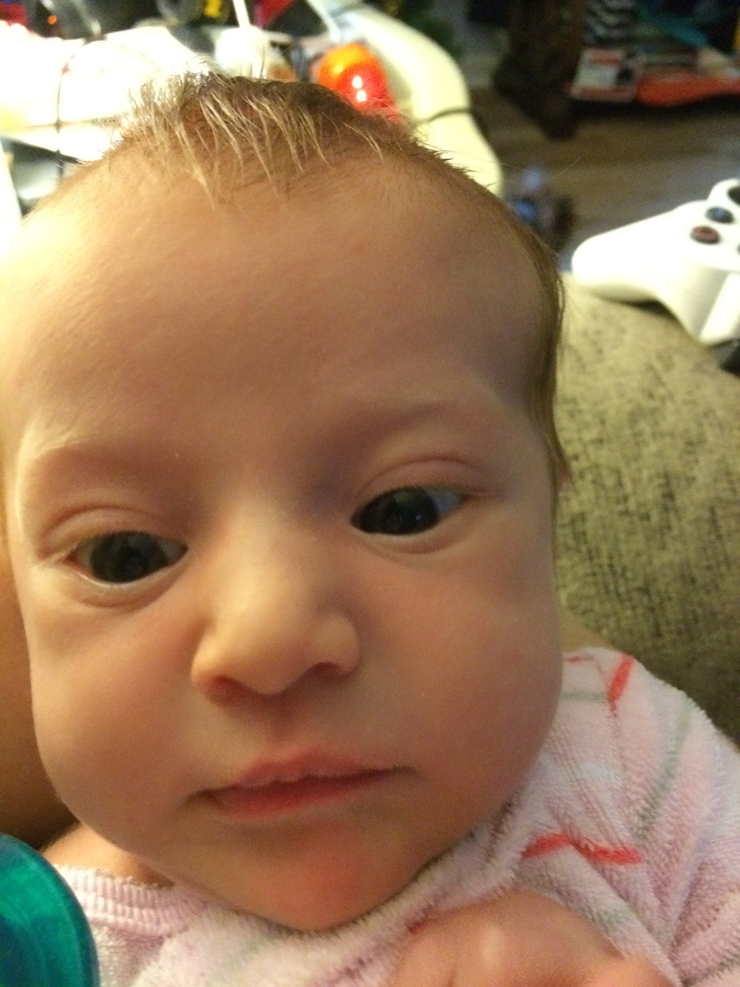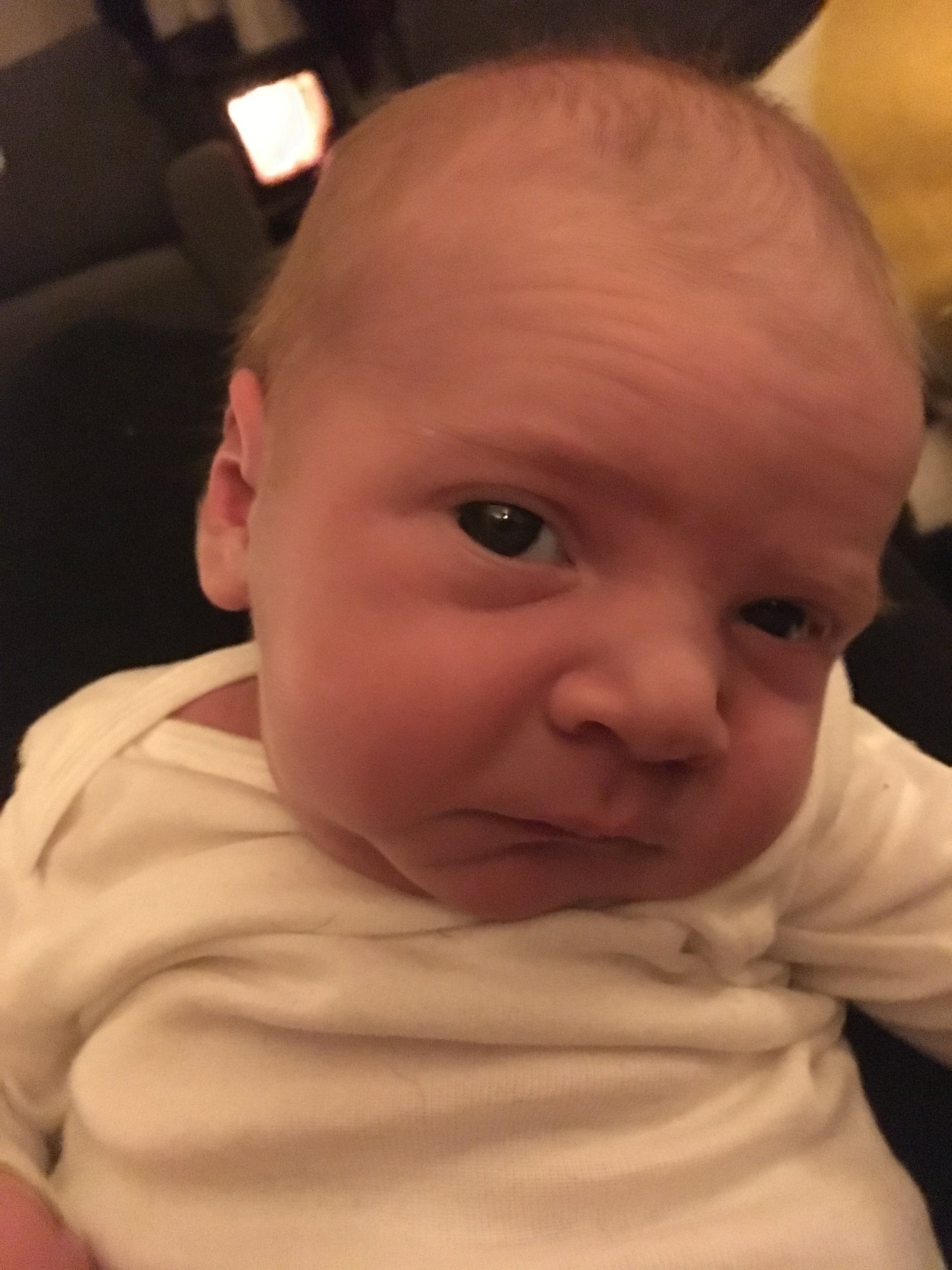 Yesterday at 15 days old. This is his "where's the boob?" face.
