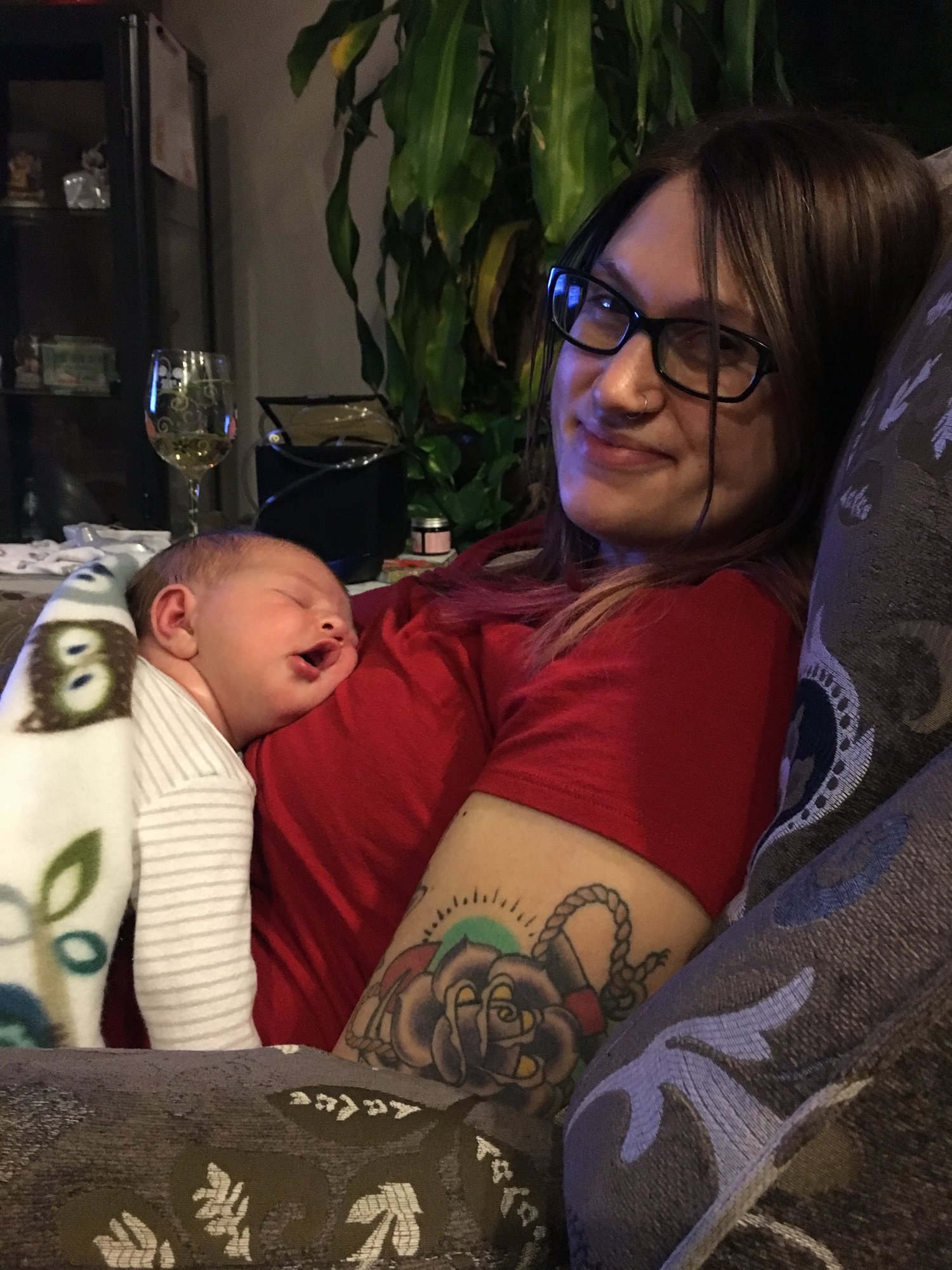 Maximus is two weeks old yesterday and DH went back to work today.. first week going two and a half days without daddy! Super sad this morning seeing him leave.. but this face makes me feel so much better. Let's go @PensiveCrayon we're rooting for you!!