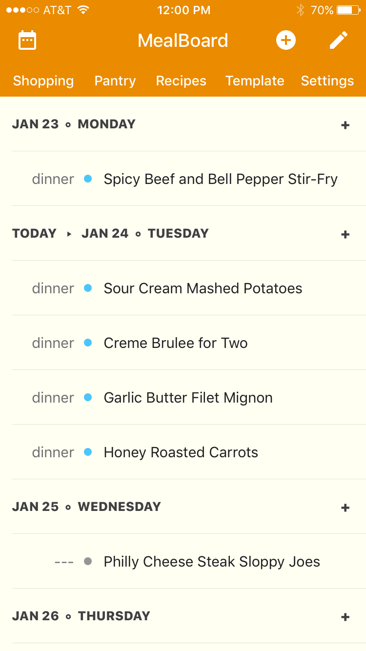 This app is amazing! You can plan your meals, import your recipes from the web or input your own, it creates a shopping list and everything you need for the week! It's called MealBoard!