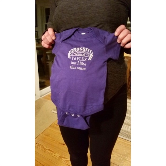 So I dropped in on a crossfit class tonight, I knew I couldn't stay away. It was a very pregnant-friendly workout so I went for it! I've been a member there since 2014 and the coach/owner gave me (and another girl there who has nearly the same due date as me since we were there for the same class) such a cute gift!