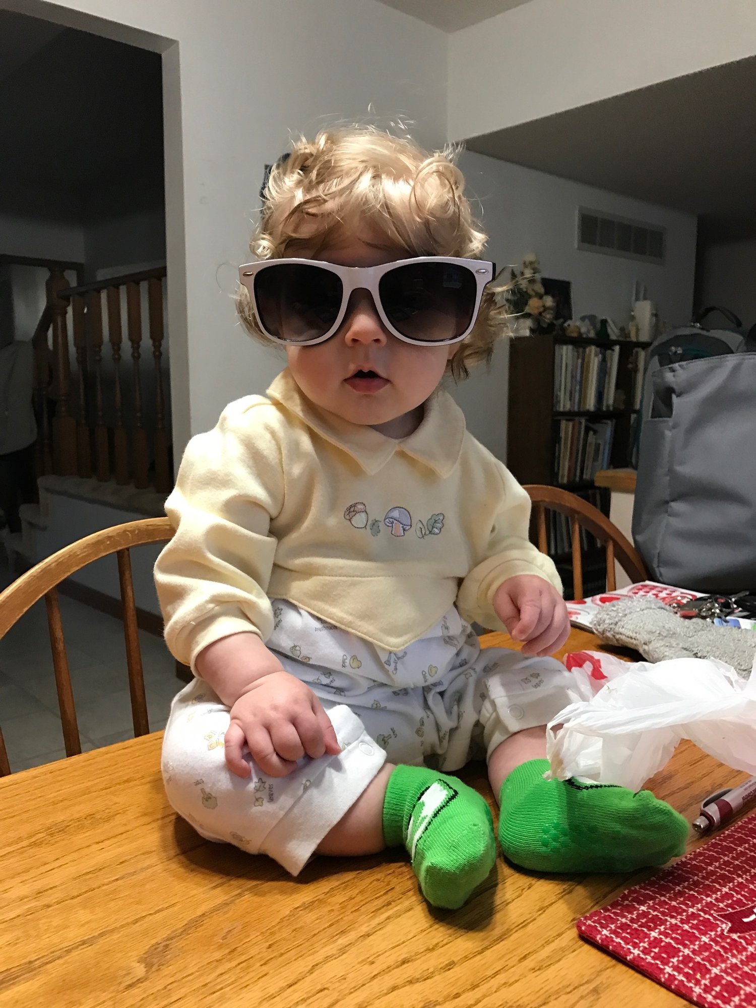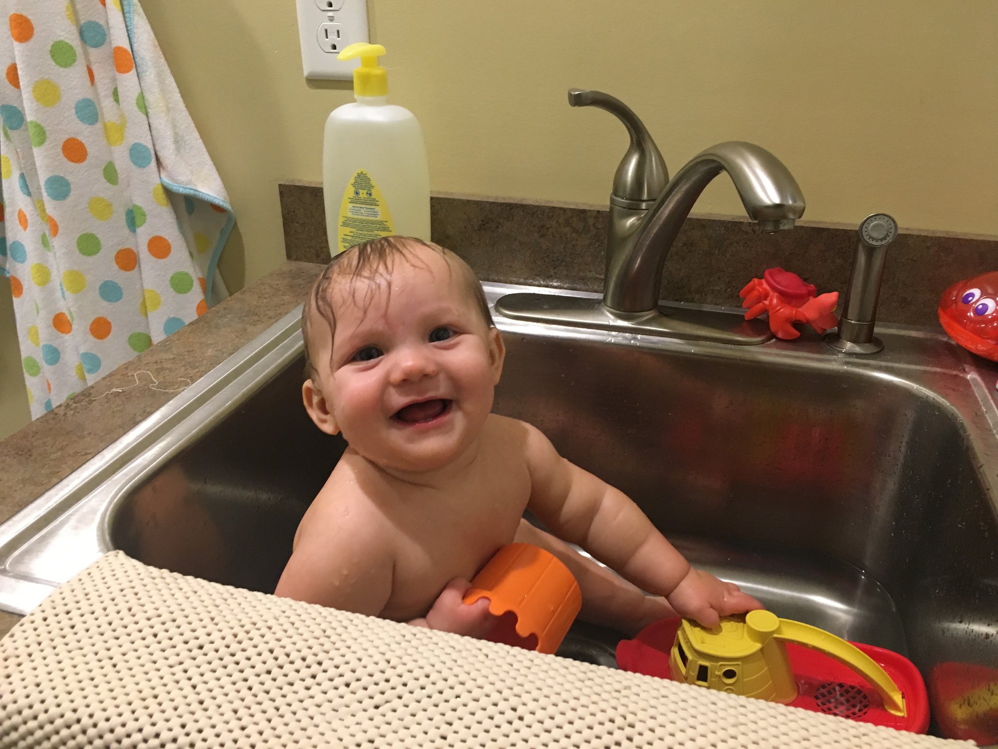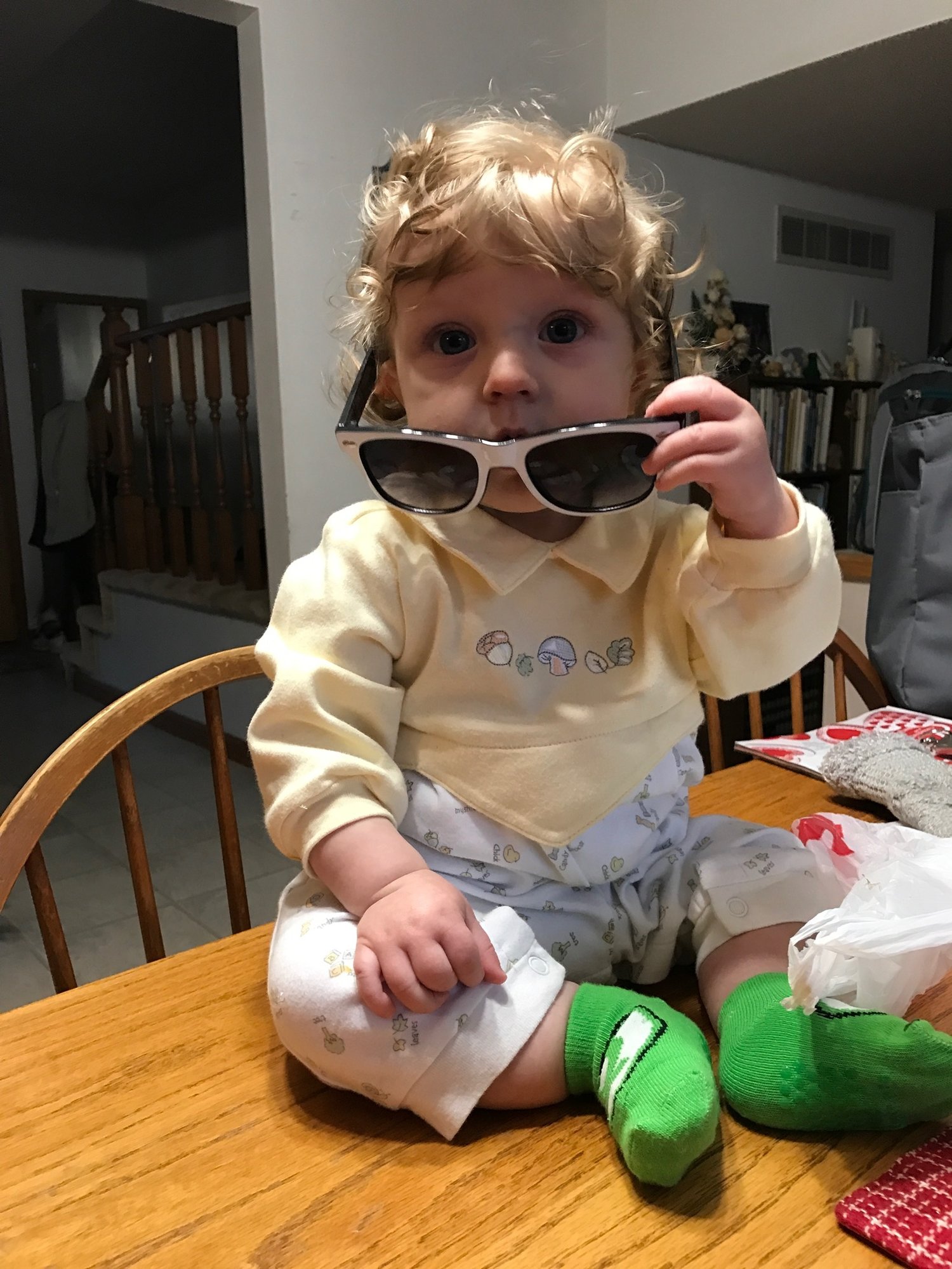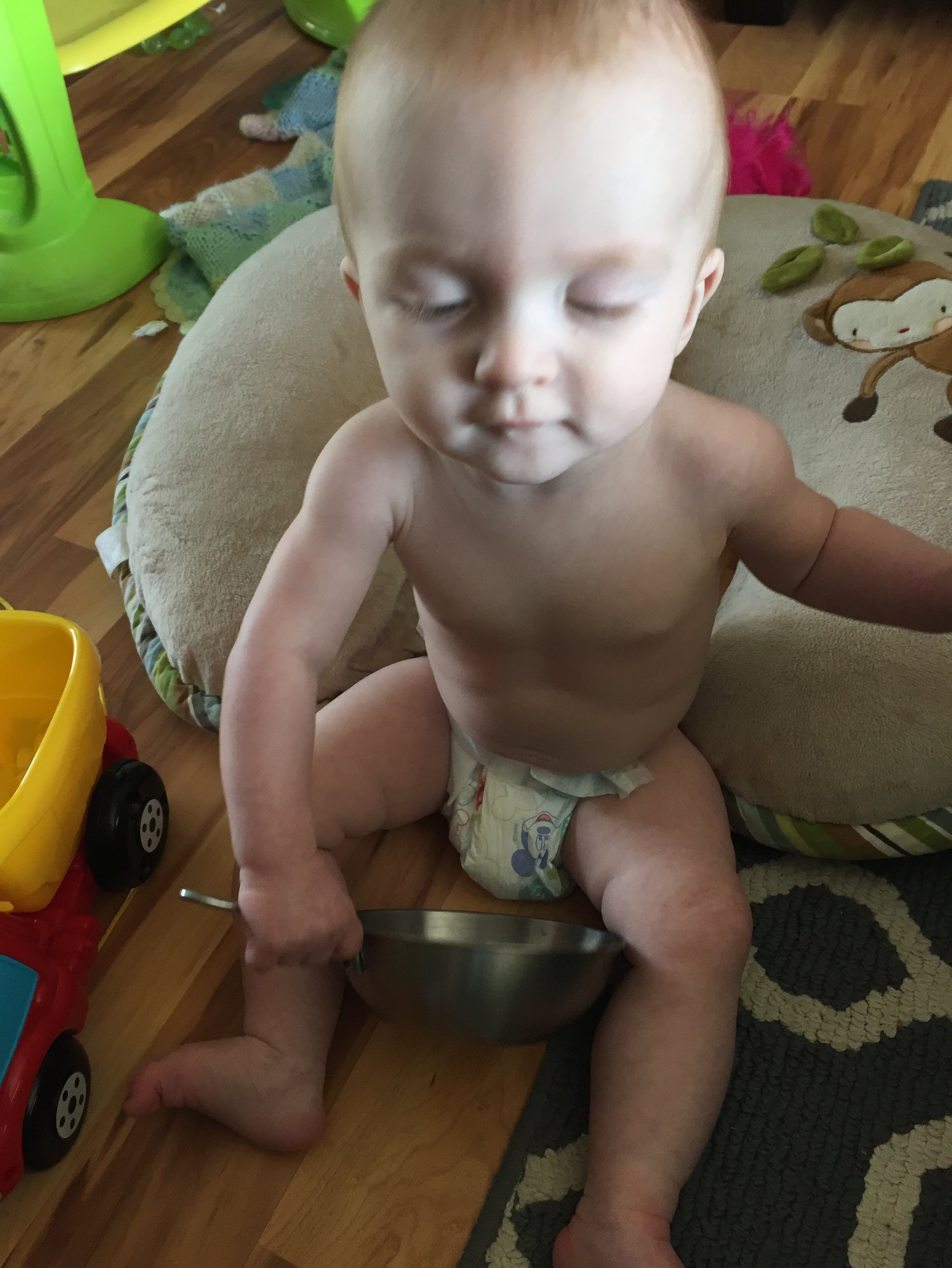 From last week, but my pictures from this week include him in terrible outfits because he felt it fit to leak through a diaper two days at Grandmas house while I was working and Grandma pulled out outfits from the 90s to put him in. Girls outfits mind you, I have 2 sisters