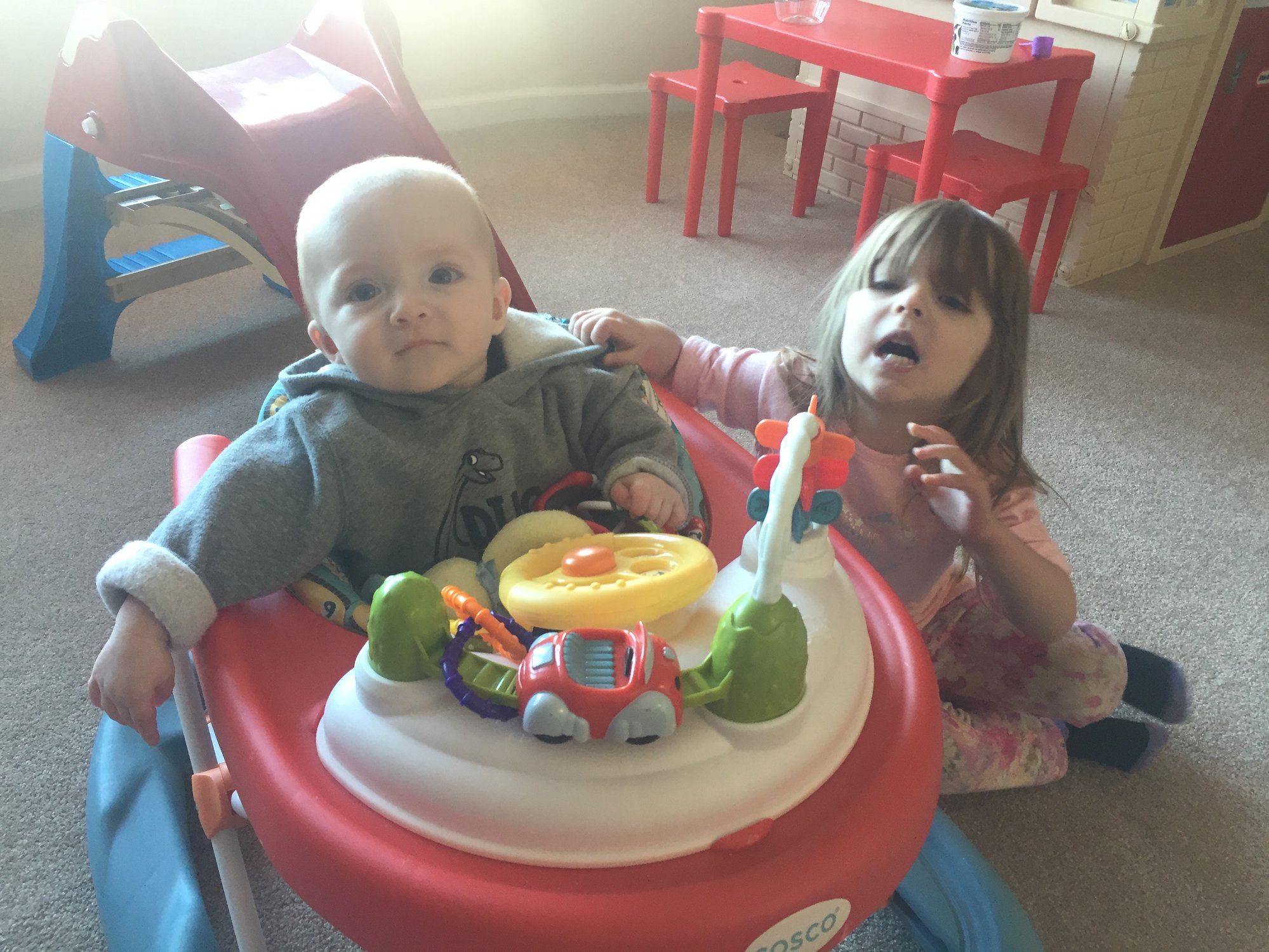 Cam loves his play seat, and his sister too! He will be 8 months on the 10th.