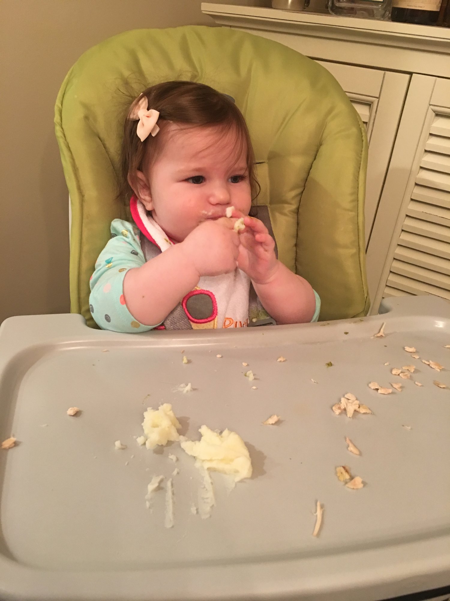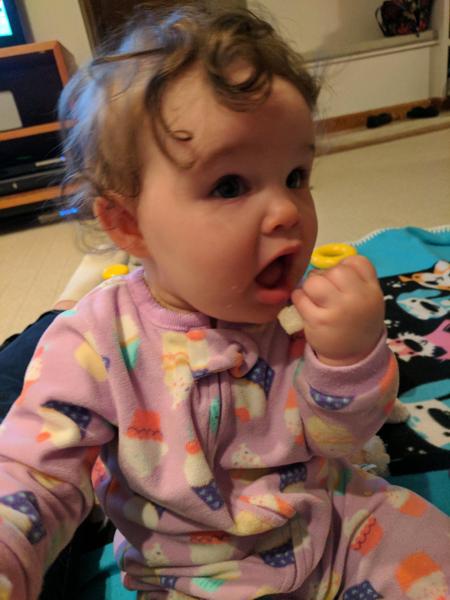 Audrielle is so close to crawling. She commando crawls and rolls around. She is practicing getting on her hands and knees. She loves our dog Luna and looks for her immediately when she wakes up in the morning or from her naps. She's loving purees and started teething crackers this week. She turned 8 months old on Monday! She's also starting to wave back at us and reaches both hands up when she wants to be picked up.