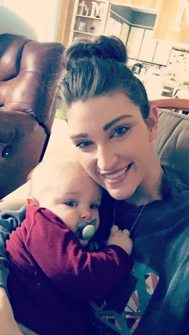 Tristan is getting stronger everyday. Isn't pulling himself up yet, but is getting the hang of holding himself up. He loves his puffs and has learned to use his sippy cup all on his own. Here he is napping in his heart bandit outfit and ready to go with Daddy to daycare.
