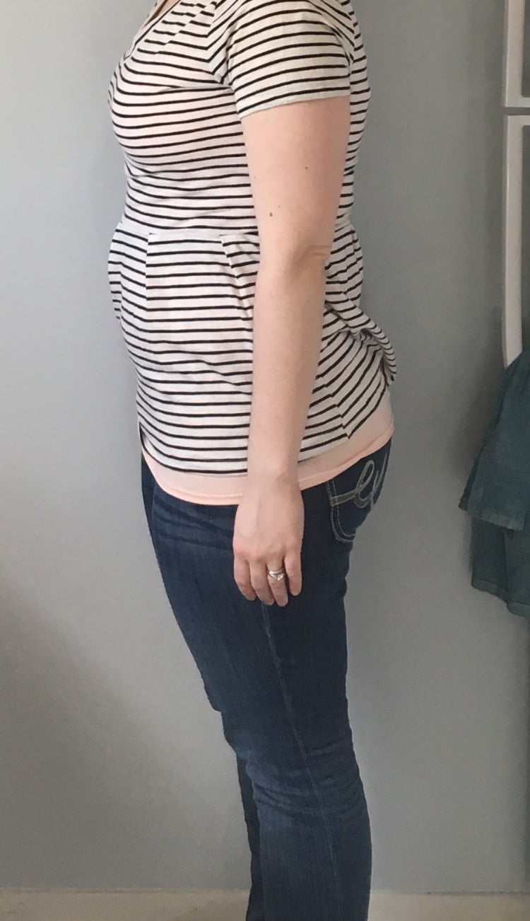 You guys are getting a post Taco Bell dinner shot. My bloat went away suddenly last weekend and I think this is the start of my real bump. Everything is slowly moving up my torso instead of being localized at the bottom of it.