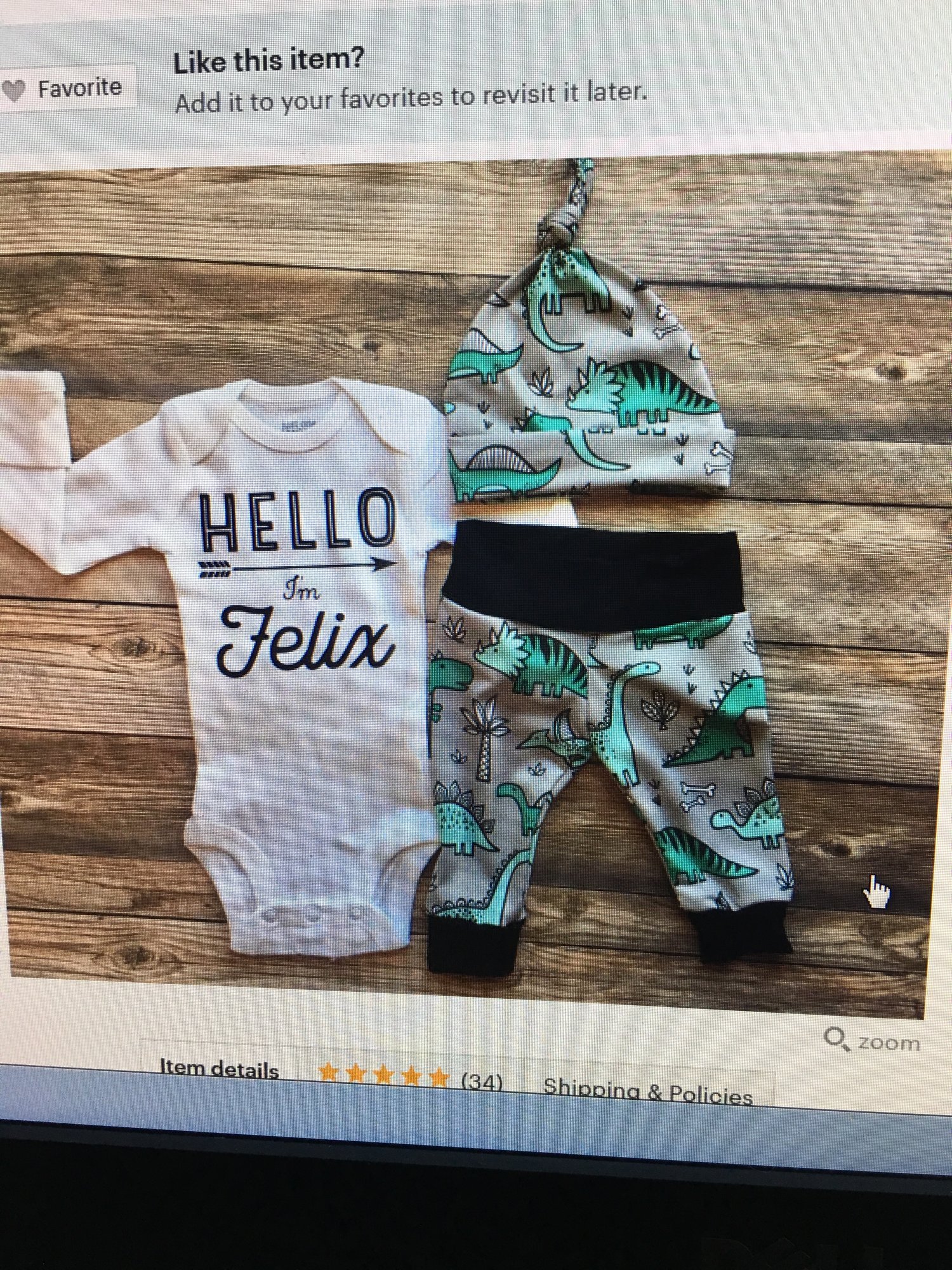 I saw this on Etsy and have been thinking about getting it as a coming home outfit. I may order it short sleeve though, since he'll be here hopefully late May/early June.
